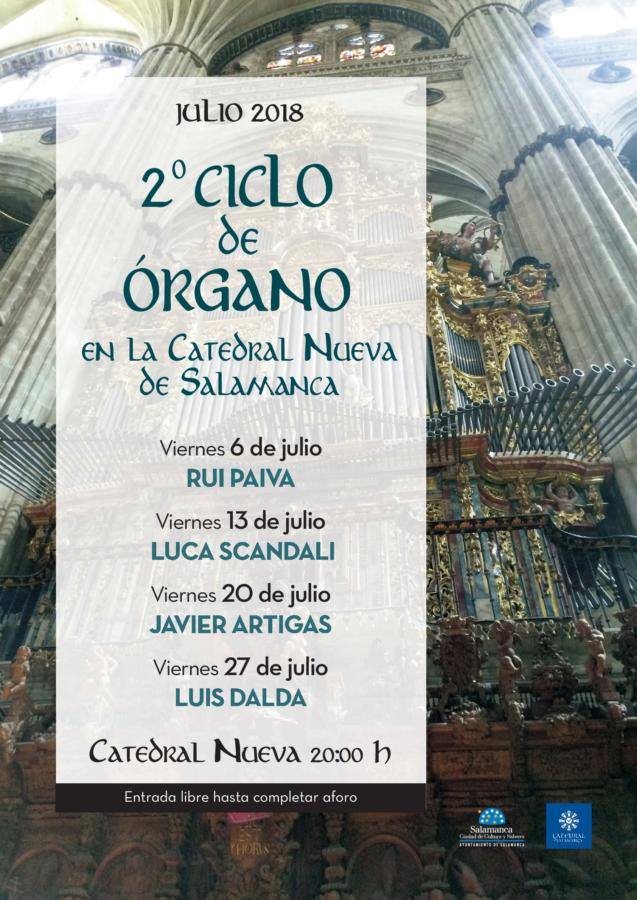 Los viernes 6, 13, 20 y 27 de julio se va a celebra el 2º Ciclo de Órgano en la Catedral Nueva. El viernes, 6 de junio será a cargo del organista Rui Paiva, el 13 de julio a cargo del organista Luca Scandali, el 20 de julio a cargo del organista Javier Artigas y el viernes, 27 de julio, a cargo del organista Luis Dalda. Los conciertos tendrán lugar a las 20:00 h en la Catedral Nueva. Entrada libre hasta completar aforo.