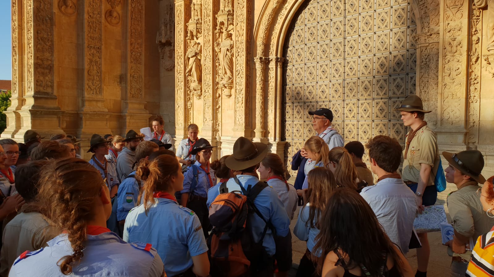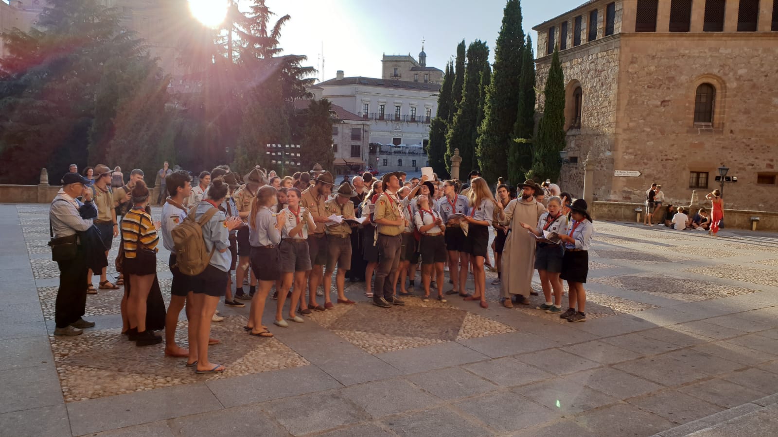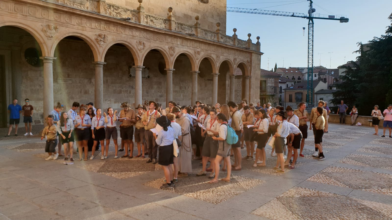 El pasado martes 7 de agosto, 70 jóvenes guías scouts católicos de Suiza visitaron la Catedral de Salamanca y realizaron una visita guiada nocturna a la ciudad acompañados por Antonio Matilla, consiliario diocesano del Movimiento Scout Católico (mSc); su presidente David Sánchez, y algunos miembros del mSc de Salamanca. En su visita a la Catedral, de forma espontánea, los jóvenes entonaron canciones a varias voces que emocionaron a todos los presentes.