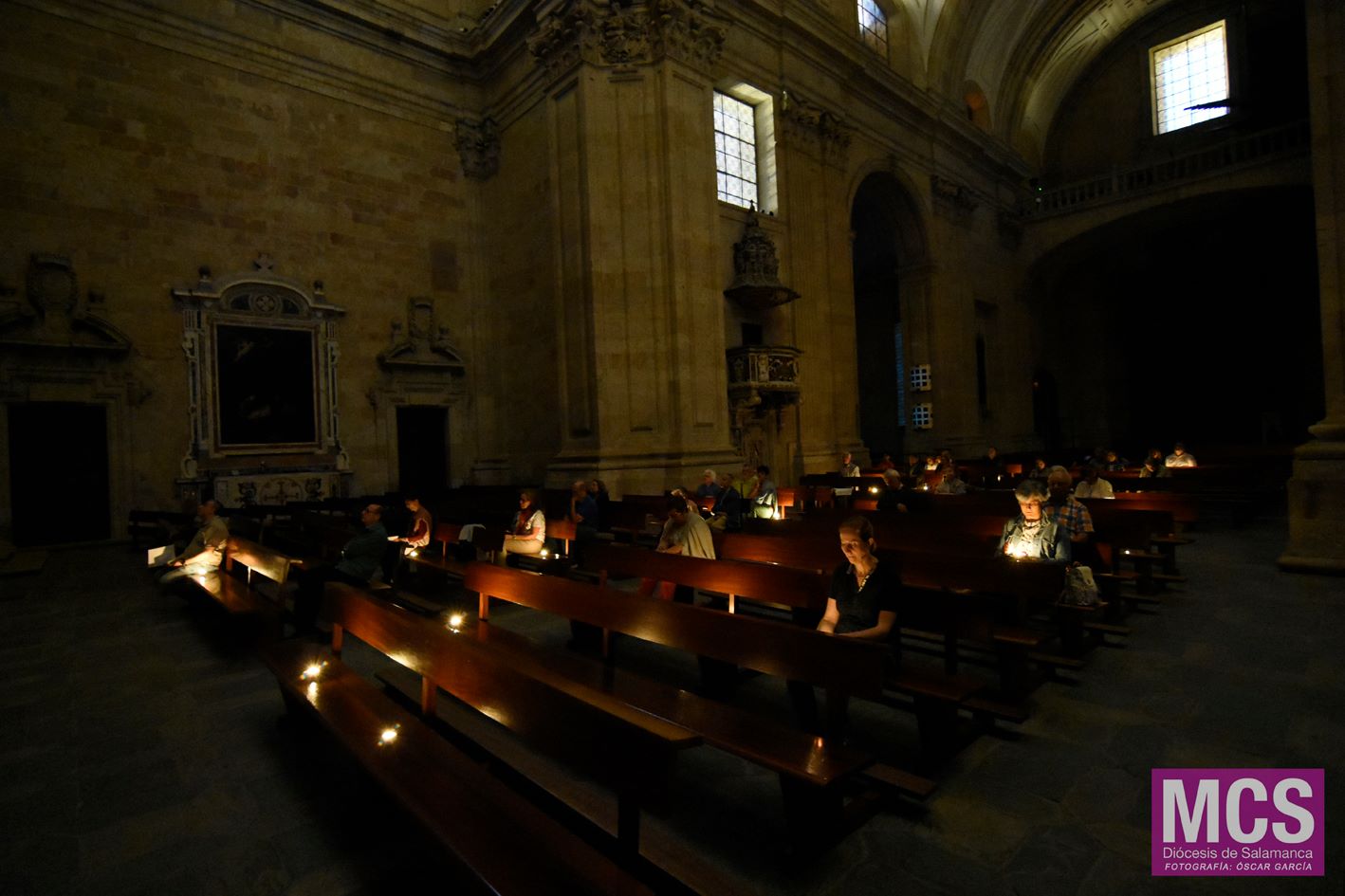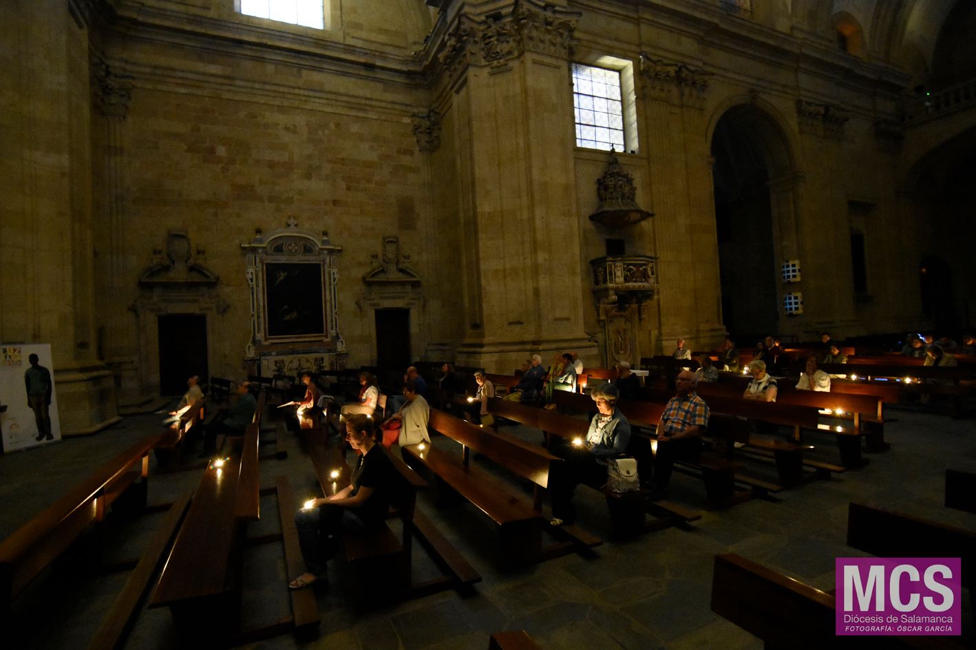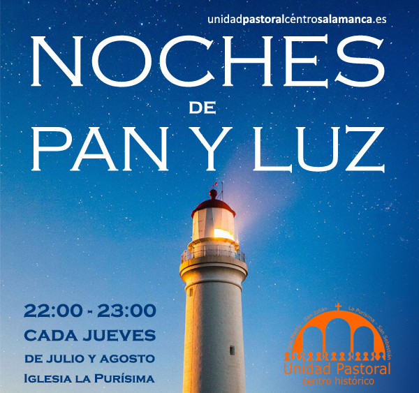 La Unidad pastoral Centro Histórico de Salamanca inauguraba el jueves 5 de julio la iniciativa: “Noches de Pan y Luz”, a las 22.00 horas en la iglesia de la Purísima. Se trata de un espacio rodeado de arte en el marco de la exposición Pan-Templvm de Puerto García Sierra, que permite disfrutar de una hora para el encuentro sosegado con la paz, el silencio, la oración y la contemplación. Una propuesta abierta a todos “a los de casa, a los de cerca y a los de lejos, que están visitando nuestra ciudad y que buscan algo más en sus días de descanso”, como afirma Poli Diaz, párroco de la Purísima.