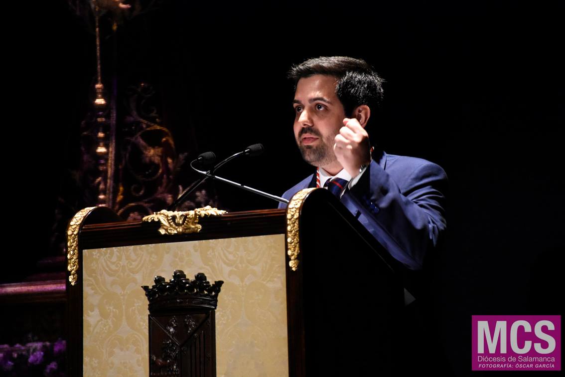 Nadie mejor para dar una primicia que de la mano de un periodista. Abraham Coco lo es, el pregonero de la Semana Santa de Salamanca de 2019. Y así arrancó su pregón en la tarde-noche del pasado martes: “Vengo a daros una noticia. Una buena noticia. ¿Qué otra cosa si no podría hacer este pregonero?”. En su preámbulo, recordó que la piedad popular “es la lengua materna con la que aprendimos a ser cristianos para proclamar el motivo por el que el Padre había decidido que su Hijo se hiciera uno de los nuestros”.