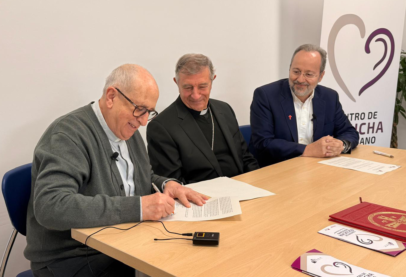 El acto concluyó con la firma del convenio de colaboración entre la Diócesis de Salamanca y el Centro de Humanización de la Salud San Camilo, formalizando así la incorporación del nuevo centro a la Red de Centros de Escucha. El acuerdo fue suscrito por el vicario general, Tomás Durán, y el director del Centro San Camilo, José Carlos Bermejo, sellando un acompañamiento que garantizará la supervisión y la formación permanente de los voluntarios.