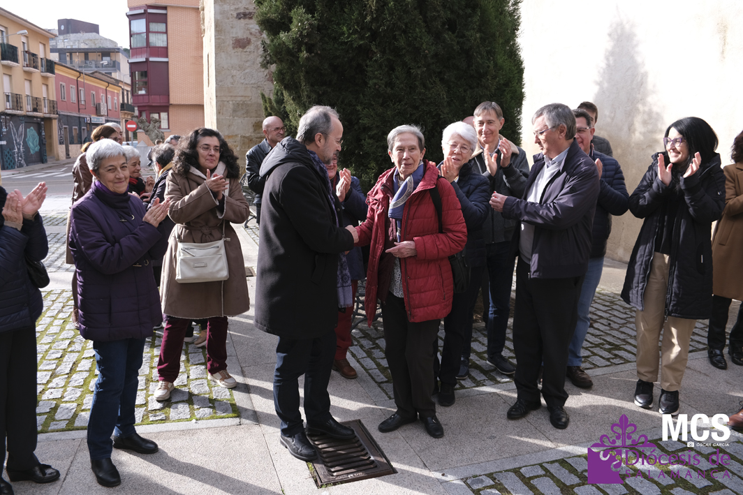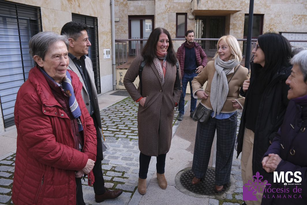 Tras la oración, se descubrió la placa situada a la entrada del centro, que lleva el nombre de Carmen Calzada, durante 26 años directora de Cáritas Diocesana de Salamanca. Visiblemente emocionada, aseguró que se trata de “un reconocimiento no merecido”, que interpreta como un gesto hacia toda la labor de Cáritas. Y dejó una frase que resume el espíritu del proyecto: “Si no escuchas, no puedes responder”. Para ella, la escucha no es solo una habilidad, sino “una vocación que hay que cultivar”, especialmente en la comunidad cristiana.