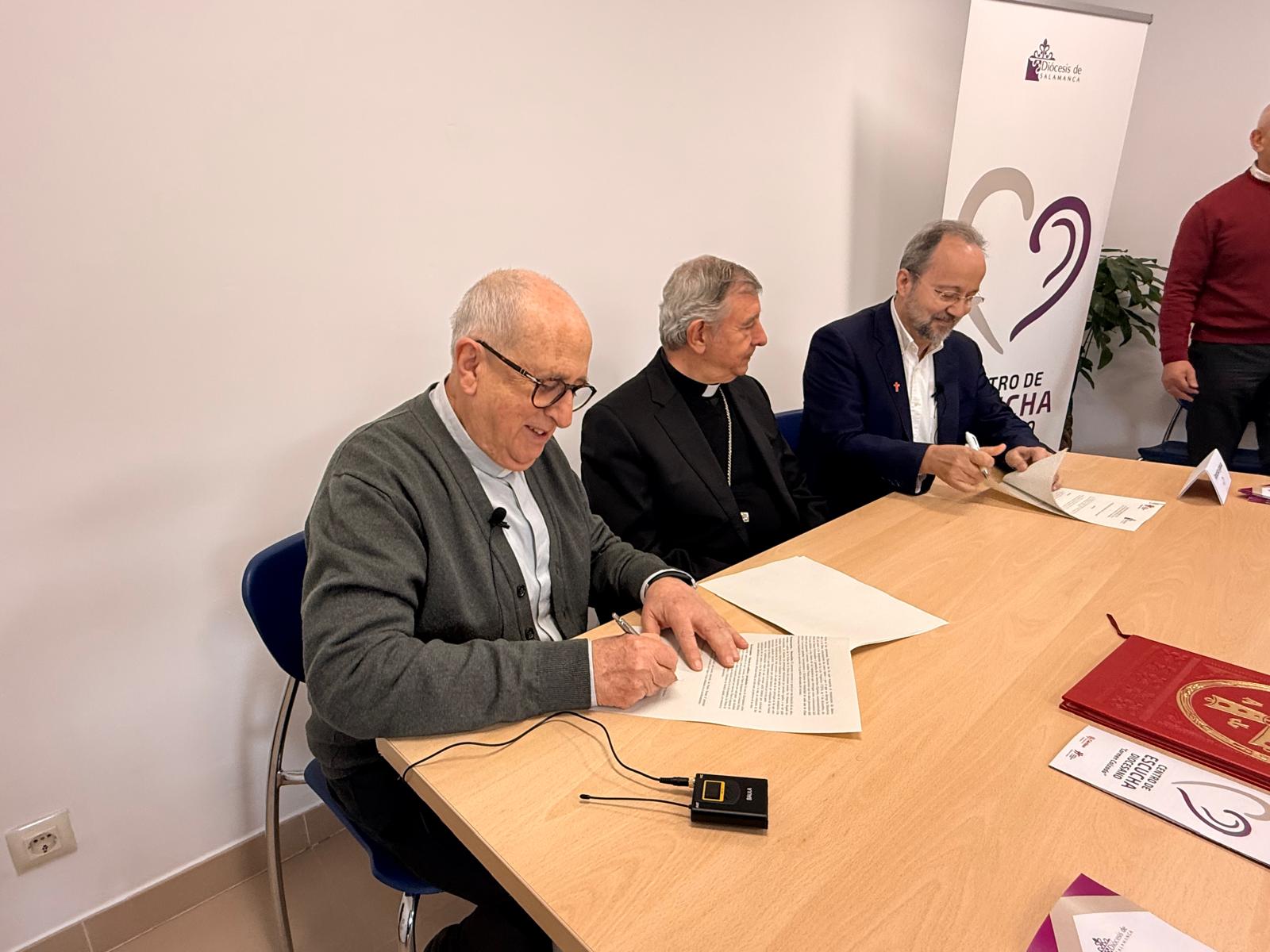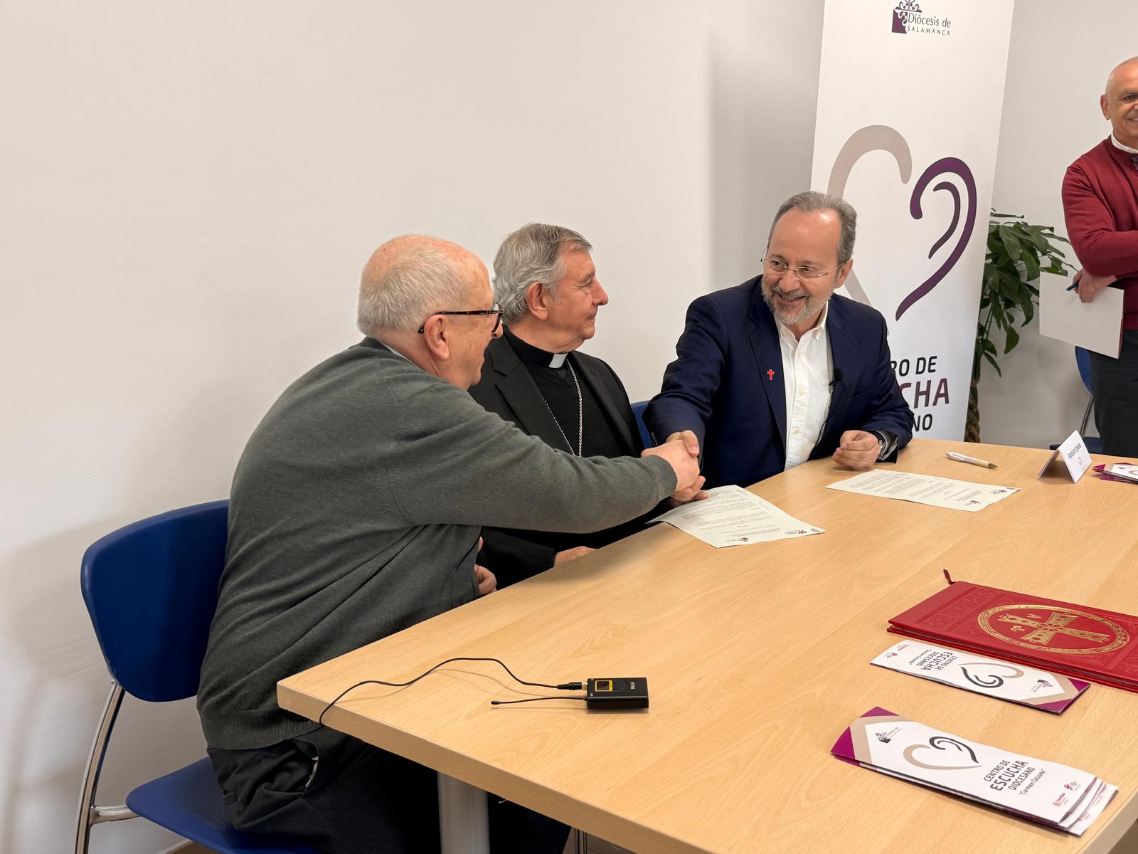 El acto concluyó con la firma del convenio de colaboración entre la Diócesis de Salamanca y el Centro de Humanización de la Salud San Camilo, formalizando así la incorporación del nuevo centro a la Red de Centros de Escucha. El acuerdo fue suscrito por el vicario general, Tomás Durán, y el director del Centro San Camilo, José Carlos Bermejo, sellando un acompañamiento que garantizará la supervisión y la formación permanente de los voluntarios.