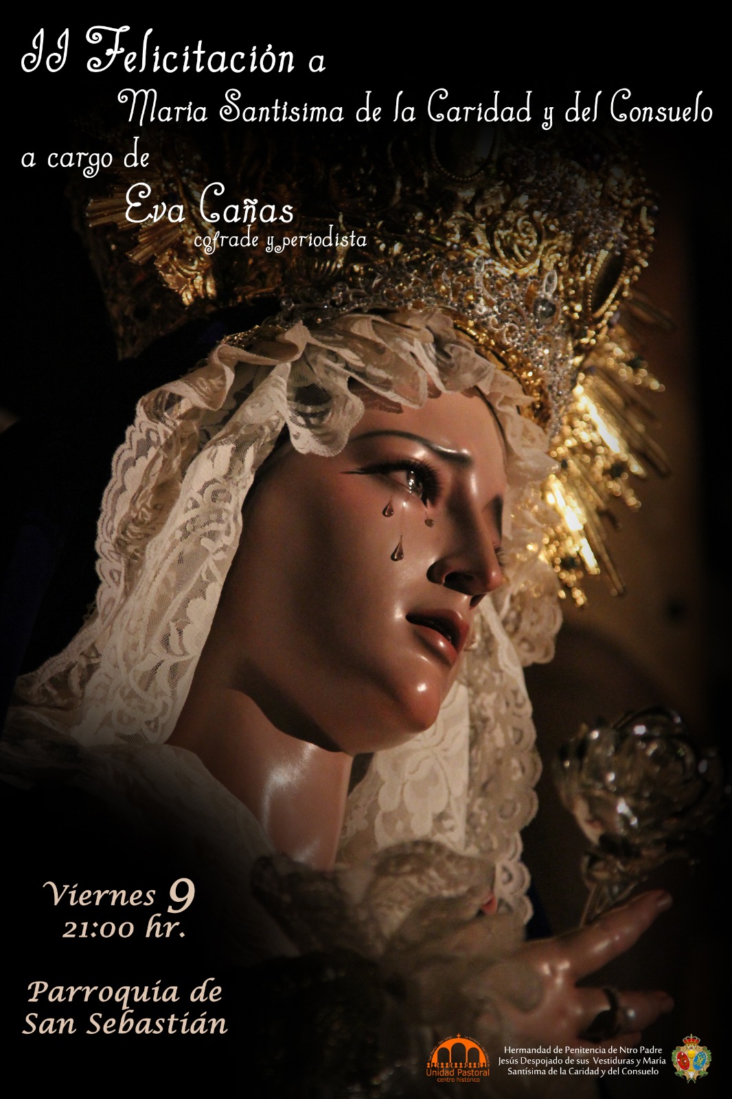El último día, 9 de noviembre, tendrá lugar la II Felicitación a María Santísima de la Caridad y del Consuelo que correrá a cargo de la peridista y cofrade Eva Cañas.