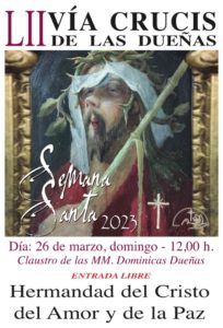 12:00 HORAS. AMOR Y PAZ. Vía crucis de las Dueñas en el claustro de las MM. Dominicanas, convento de las Dueñas, con entrada libre y posterior eucaristía.