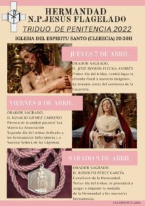 20:30 HORAS. FLAGELADO. Triduo de la Hermandad de Nuestro Padre Jesús Flagelado, en la iglesia de la Clerecía.