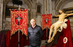 Por último, relata otro de los enseres que porta cada año un hermano concreto, la Cruz del penitente, que como apunta Julián Alcántara, es la cruz primitiva del crucificado, “tenía carcoma y se restauró, y desde entonces lo saca un cofrade todos los años, y para recordarlo, se coloca una placa de plata con su nombre y el año”. Como describe, desde el año 1987 ha salido el penitente, salvo los dos años de pandemia, “han sido 35 años”.