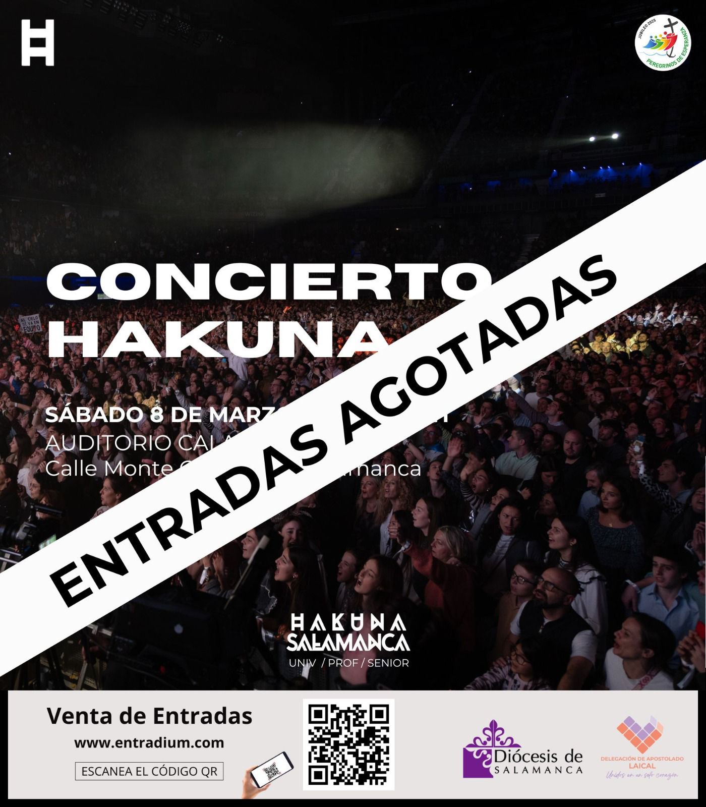 El concierto organizado por la Delegación Diocesana de Apostolado Laical y Hakuna Salamanca y enmarcado en el programa diocesano del Jubileo 2025, previsto para el 8 de marzo a las 20:30 horas en el Auditorio Calatrava, ha agotado todas sus entradas en menos de seis horas.