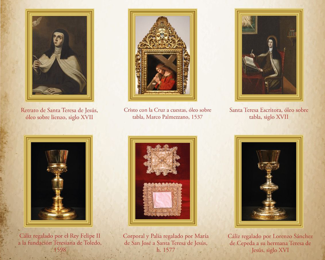 Al día siguiente, están previstas dos eucaristías (a las 11:00 y a las 13:00 horas) y un acto cultural, a las 13:30 horas, en el que se van a presentar seis piezas artísticas que se incorporan al Museo Carmelitano Teresa de Jesús (Carmus). En concreto, se trata de dos cálices del siglo XVI, regalados por Lorenzo Sánchez de Cepeda a su hermana Teresa, y otro por el Rey Felipe II a la fundación teresiana de Toledo; un óleo sobre tabla en el que aparece representado Cristo con la cruz a cuestas, obra de marco Palmezzano (1537); un retrato de Santa Teresa de Jesús (s. XVII), en óleo sobre lienzo, y otro óleo sobre tabla de Santa Teresa escritora (s.XVII); además, de un corporal y una Palia (1577) donados por María de San José a Santa Teresa de Jesús.