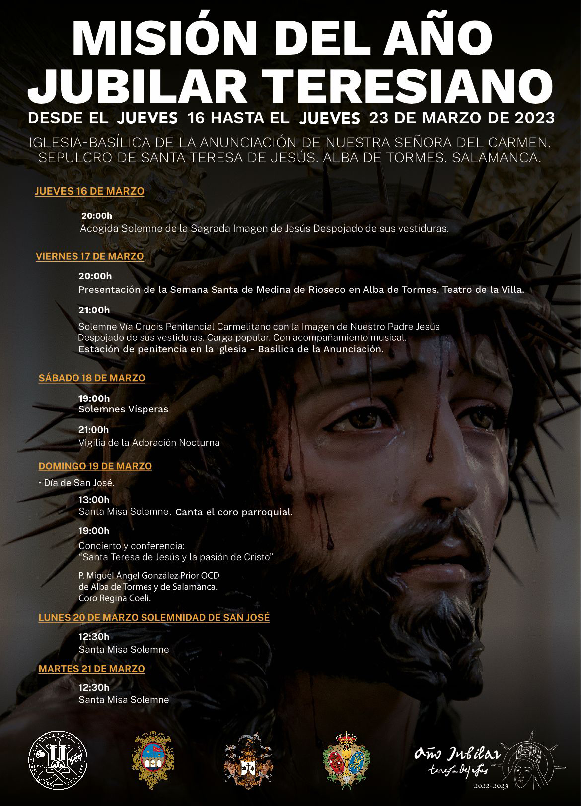 La imagen titular de la Hermandad de Nuestro Padre Jesús Despojado podrá venerarse en la iglesia del Monasterio de la Anunciación de Nuestra Señora del Carmen, en Alba de Tormes, del 16 al 23 de marzo, con motivo de la “Misión del Año Jubilar Teresiano”, que impulsan conjuntamente la Orden del Carmelo Descalzo, el consistorio albense, la Junta de Cofradías de Alba y esta hermandad sacramental.