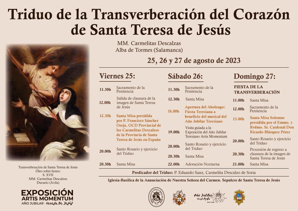 Como es tradición, la imagen de Santa Teresa abandonará la clausura para permanecer en el templo durante todo el triduo, y la salida está prevista el jueves, a las 12:00 horas, regresando a clausura el día de la fiesta, el domingo, 27 de agosto, tras el ejercicio del triduo, a las 20:30 horas.