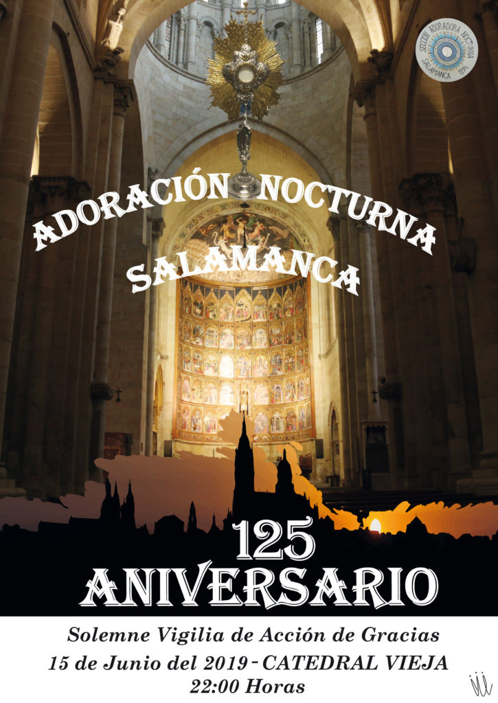 La sección de la Adoración Nocturna de Salamanca celebra este año su 125º aniversario. Entre los actos conmemorativos de este aniversario el jueves, 16 de mayo, tendrá lugar una conferencia a cargo del párroco de Tordillos, Antonio Carreras Sánchez-Granjel, a las 20.00 de la tarde en la capilla de la ANE, en la calle Condes de Crespo Rascón 59. Tras la ponencia se celebrará la Vigilia de San Pascual Bailón.
