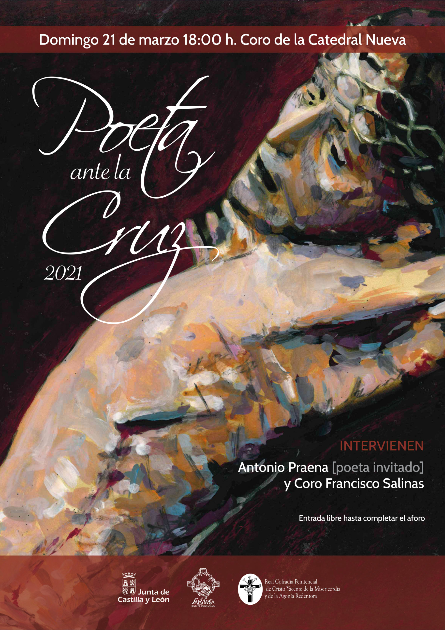 El poeta Antonio Praena recitará sus versos ante el Cristo de la Agonía Redentora en el coro de la Catedral Nueva este domingo, 21 de marzo, a las 18:00 horas, en el acto del Poeta ante la Cruz que organiza cada Cuaresma la Real Cofradía del Cristo Yacente de la Misericordia y de la Agonía Redentora.