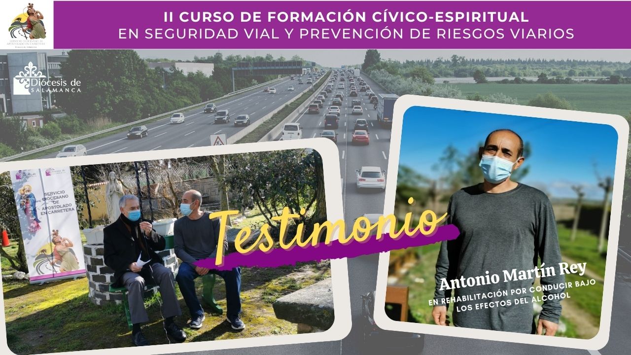 En esta ocasión, la sesión cambia a un formato de charla-entrevista para recoger el testimonio de Antonio Martín, un salmantino de 49 años que fue condenado con cuatro meses de cárcel por conducir de forma reiterada bajo los efectos del alcohol. Durante los últimos 16 meses, ha estado en rehabilitación en Proyecto Hombre de Salamanca, desde donde realiza su testimonio de la mano del director de Apostolado en Carretera, David González Porras. El objetivo es sensibilizar a la población de los peligros del consumo de alcohol y conducir bajo sus efectos.