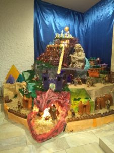 del belén parroquial que han diseñado varios jóvenes de la parroquia de Cristo Rey de Salamanca para conmemorar el 50º aniversario de la erección canónica del templo en el Barrio Vidal. Los jóvenes han partido del relato del Apocalipsis 12, 1-17 para la creación de este belén tan original. Merece la pena visitarlo. Su interpretación teológico-catequética está disponible para su descarga en pdf en esta misma sección.