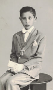Después de vivir fuera de Salamanca, junto a su familia llegó a Fuentes de Oñoro, “y allí viví en el pueblo y en la estación”. Como él mismo relata, en este municipio fronterizo, “había tres poblados: la estación, el pueblo y la aduana”. Y allí estuvo hasta que a los 13 años le llevaron al seminario de Ciudad Rodrigo. Pero casi no sigue ese camino porque el deseo de su madre era que fuera salesiano, “pero el cura de mi pueblo, que me había hecho monaguillo con tan solo siete años, se empeñó en que fuera al seminario, que de fraile nada”. Y así fue finalmente, donde estuvo hasta segundo de Filosofía.