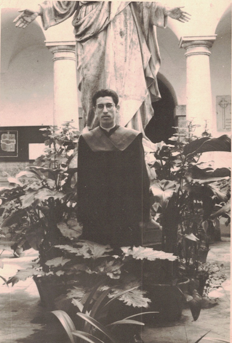Después de vivir fuera de Salamanca, junto a su familia llegó a Fuentes de Oñoro, “y allí viví en el pueblo y en la estación”. Como él mismo relata, en este municipio fronterizo, “había tres poblados: la estación, el pueblo y la aduana”. Y allí estuvo hasta que a los 13 años le llevaron al seminario de Ciudad Rodrigo. Pero casi no sigue ese camino porque el deseo de su madre era que fuera salesiano, “pero el cura de mi pueblo, que me había hecho monaguillo con tan solo siete años, se empeñó en que fuera al seminario, que de fraile nada”. Y así fue finalmente, donde estuvo hasta segundo de Filosofía.