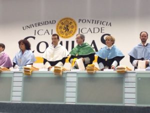Durante unos meses colaboró en la parroquia de San Martín, antes de marchar a Roma a realizar su tesis doctoral, enviado por el obispo Braulio. Previamente, necesitaba perfeccionar su inglés y alemán, por lo que pasó seis meses en Dublín (Irlanda) y un año en Múnich (Alemania). Después se trasladó al Colegio Español en Roma para hacer su tesis doctoral en Teología Dogmática en la Universidad Gregoriana, que defendió en 2022. Al año siguiente, comenzó a trabajar como profesor de Teología en la Universidad Pontificia Comillas-Madrid, invitado por el profesor jesuita José Ramón Busto, a quien agradece la oportunidad que le ofreció de desarrollar su vocación teológica. “Una vocación que no estaba en el origen de mi vocación sacerdotal, sino que se fue despertando y desarrollando posteriormente” y que lleva ejercitando desde hace 21 años, “siendo docente en la Universidad Pontificia de Comillas y, a la vez, intentando también acompañar a las diócesis españolas allí donde me solicitan”.