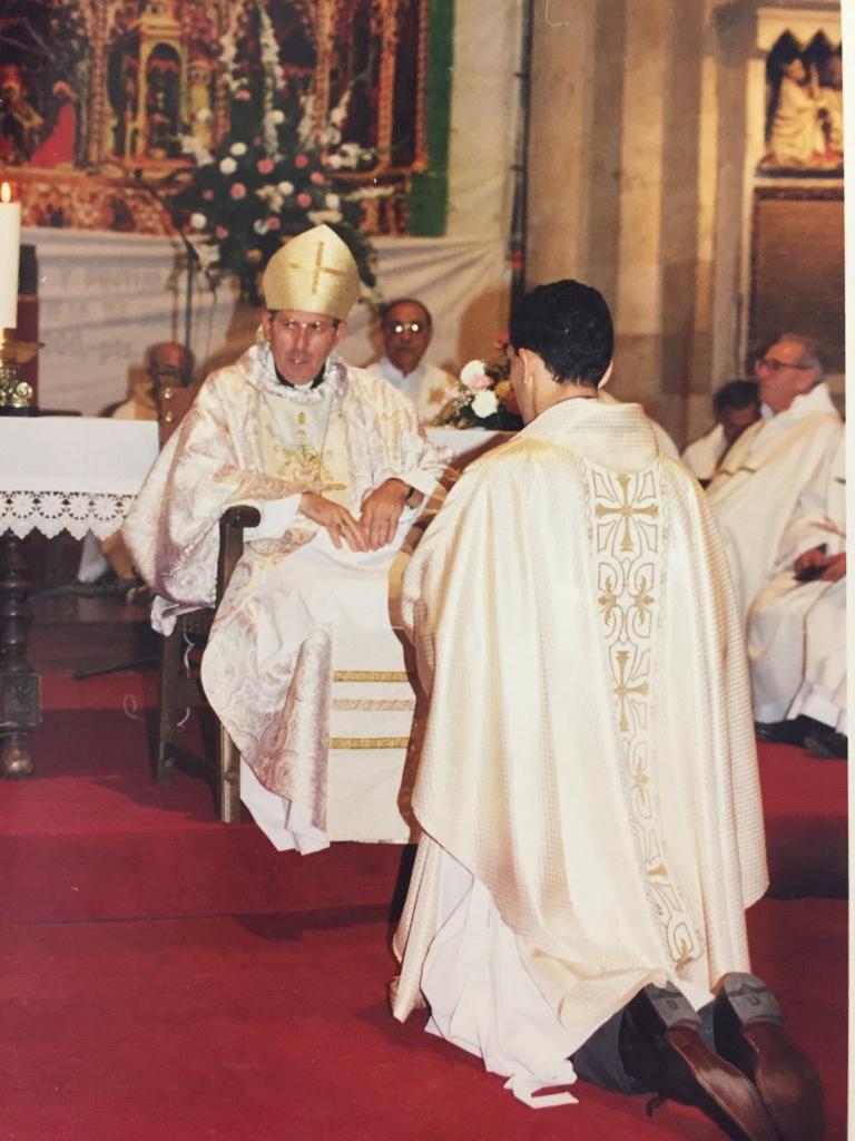 Como seminarista, colaboró en la parroquia de Jesús Obrero, en el barrio de Pizarrales de Salamanca con Jesús García. Más tarde, en Alba de Tormes, donde realiza su etapa pastoral, junto a la fraternidad cristiana y bajo la guía de Florentino Gutiérrez y Magdalena Cabezas. Fue ordenado diácono el 10 de enero de 1999 en la villa ducal, y el 11 de julio de ese mismo año recibió la ordenación sacerdotal de manos del obispo Braulio Rodríguez Plaza en la Catedral Vieja de Salamanca. Recuerda aquella celebración como algo que le sobrepasaba por completo, “no me cabía en el corazón, no tenía capacidad asimilar todo aquello que viví”.