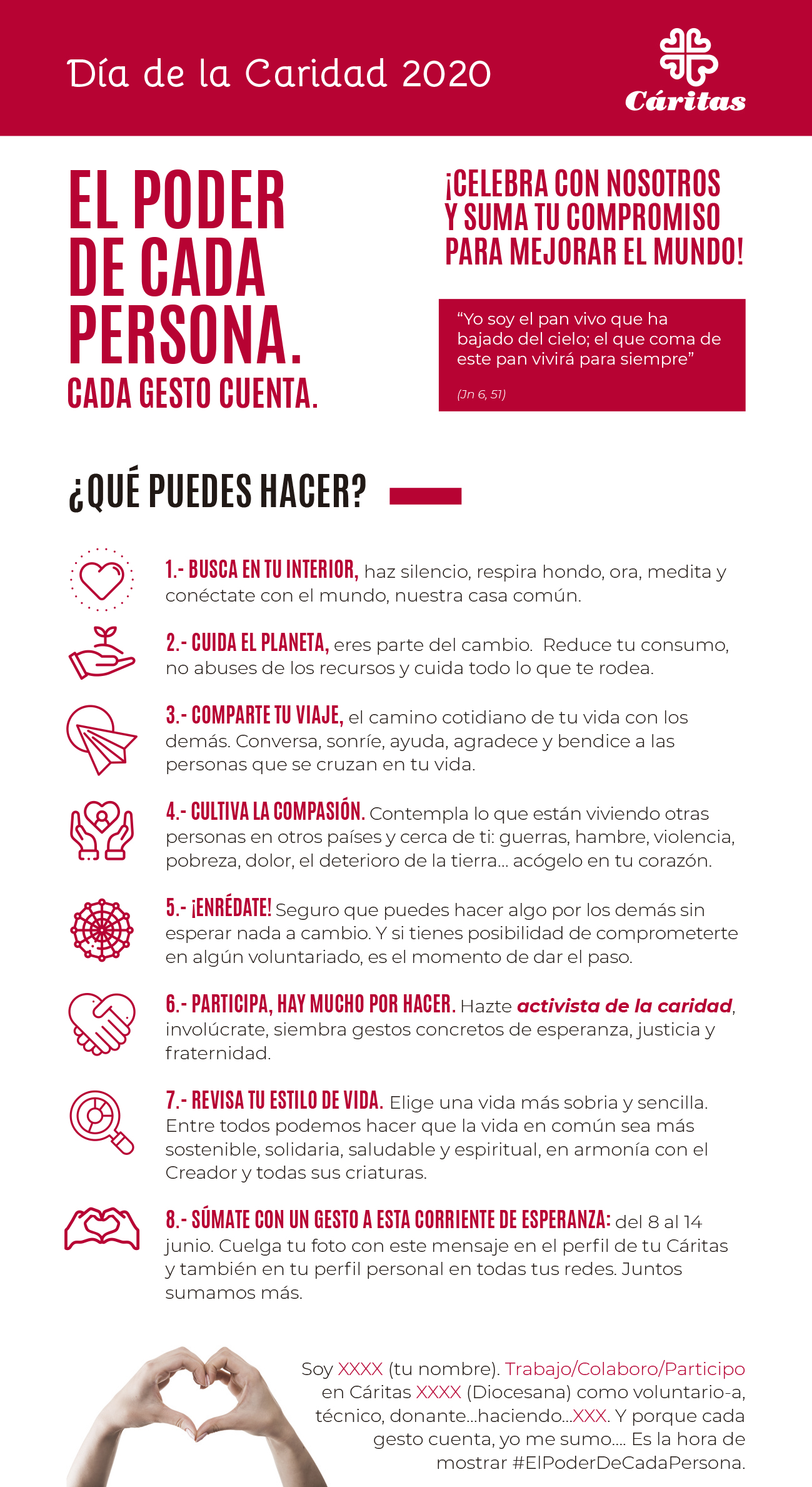 Con motivo de la celebración del Corpus Christi, Día Nacional de la Caridad, esta organización diocesana ha presentado su memoria anual de actividad durante el 2019 y su campaña para este día, que lleva por lema “El poder de cada persona. Cada gesto cuenta”, en una presentación pública que ha tenido lugar este miércoles, 10 de junio, ante los medios de comunicación.
