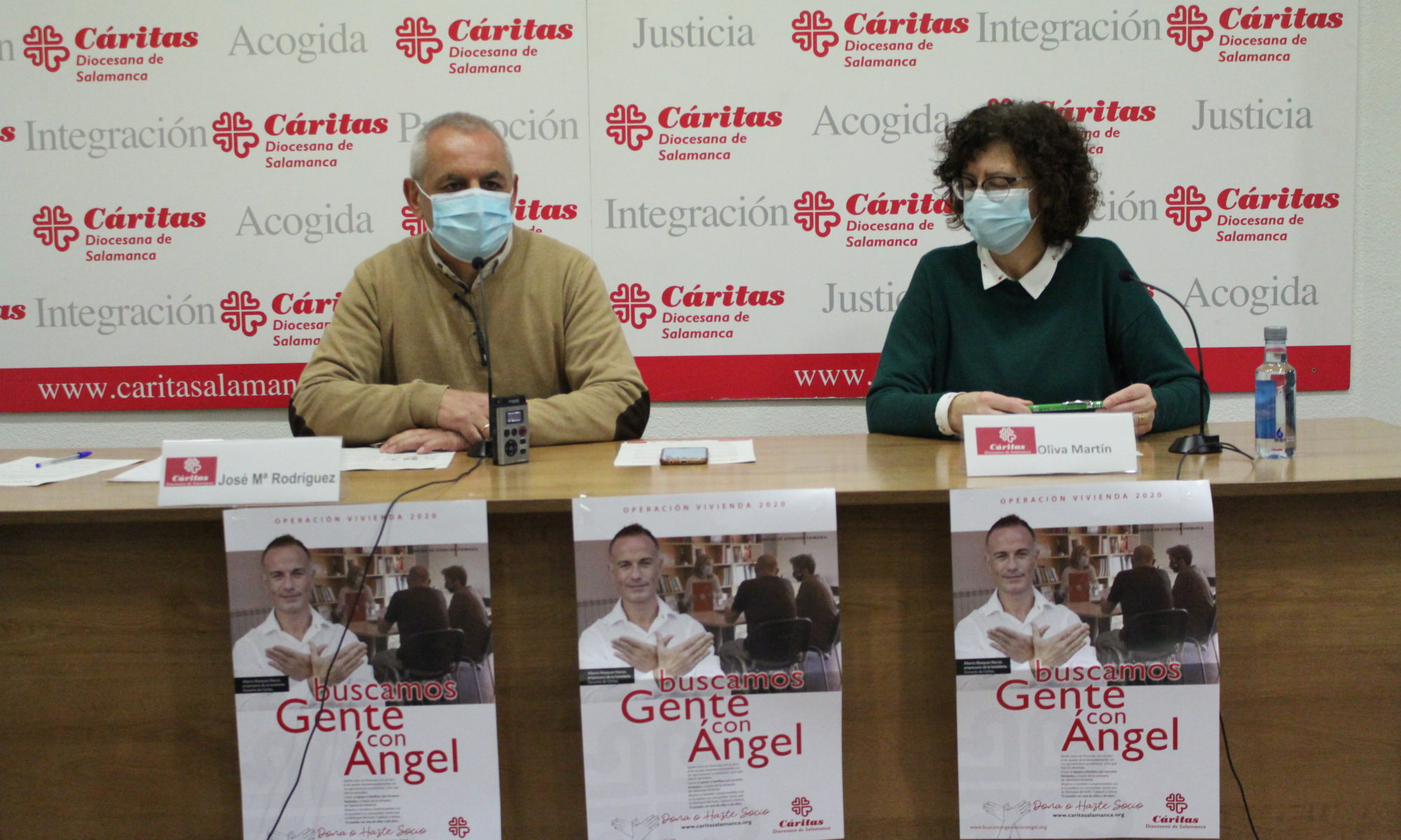 José Mª Rodríguez, secretario general de Cáritas Diocesana de Salamanca y Oliva Martín, coordinadora del recurso de acogida y atención primaria de la entidad han presentado esta mañana la campaña Operación Vivienda 2020.