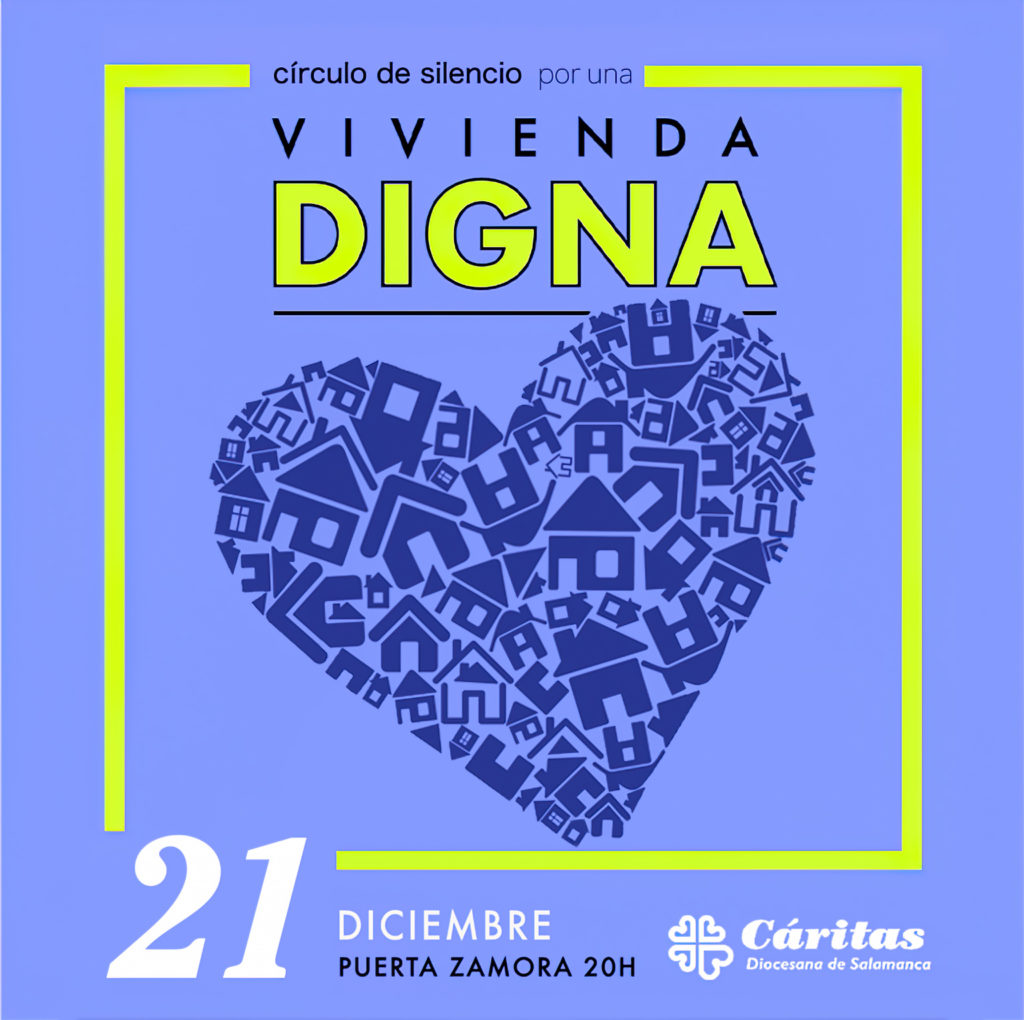 Dentro de la campaña de Operación Vivienda 2023, Cáritas celebrará esta tarde, 21 de diciembre, el Círculo de Silencio por una vivienda digna, a las 20:00 horas, en la Puerta de Zamora, junto a la iglesia de San Marcos. Además, la colecta de las parroquias de este domingo, 24 de diciembre, estará destinada a esta campaña.