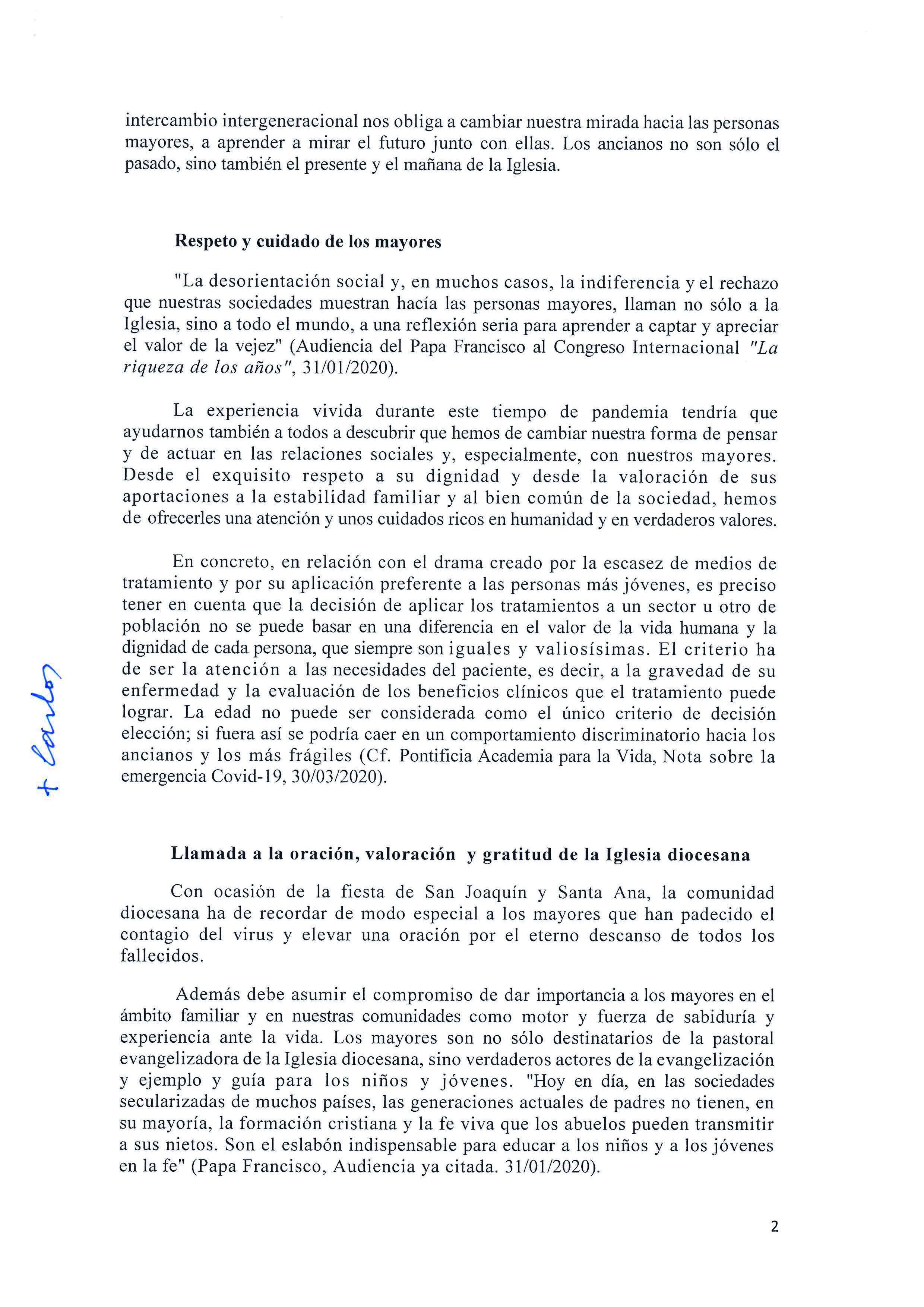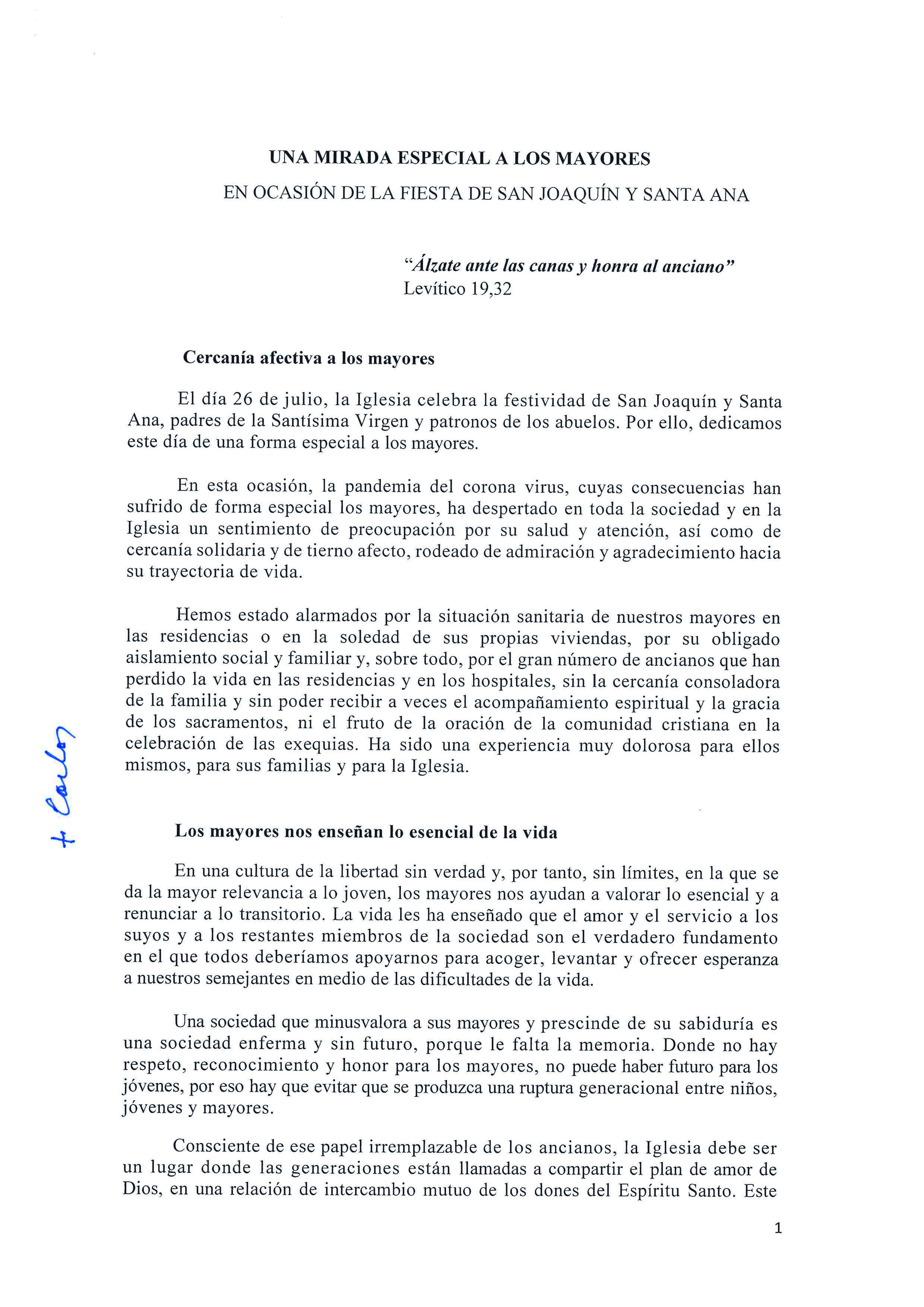 Carta del obispo de la Diócesis de Salamanca a los mayores