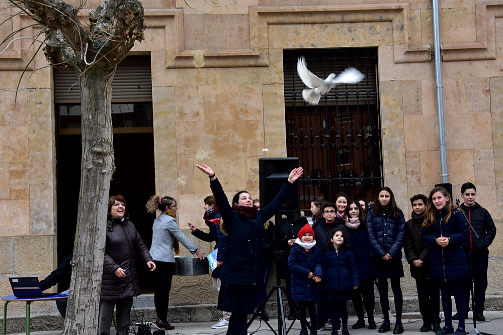 Los alumnos de las Esclavas Corazón de Jesús – Fundación Educativa ACI han realizado la jornada escolar de la No Violencia y la Paz. En esta jornada, se ha organizado un encuentro de todos los alumnos en el patio del colegio, se ha leído un manifiesto escrito por uno de los profesores del centro y juntos han interpretado y bailado la canción Moving de Macaco con la idea de representar una metáfora sobre el movimiento por la paz. Los alumnos del colegio de Las Esclavas se mueven por un sueño común: la paz. Seguidamente dos representantes de cada etapa educativa han leído unas frases alusivas a la paz. Con la liberación de una paloma de la paz, la comunidad educativa ha manifestado su intención de celebrar la paz en nuestra ciudad y en todo el mundo todos los días.