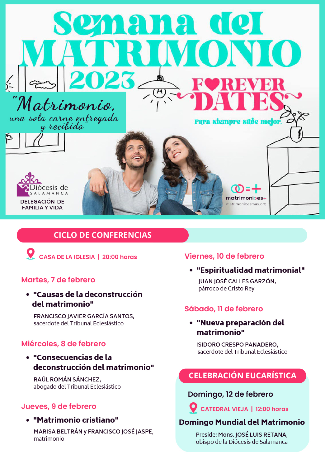 La Delegación de Familia y Vida convoca a los matrimonios a participar en la celebración diocesana de la Jornada Mundial del Matrimonio, el domingo, 12 de febrero, a las doce del mediodía, en la Catedral Vieja.