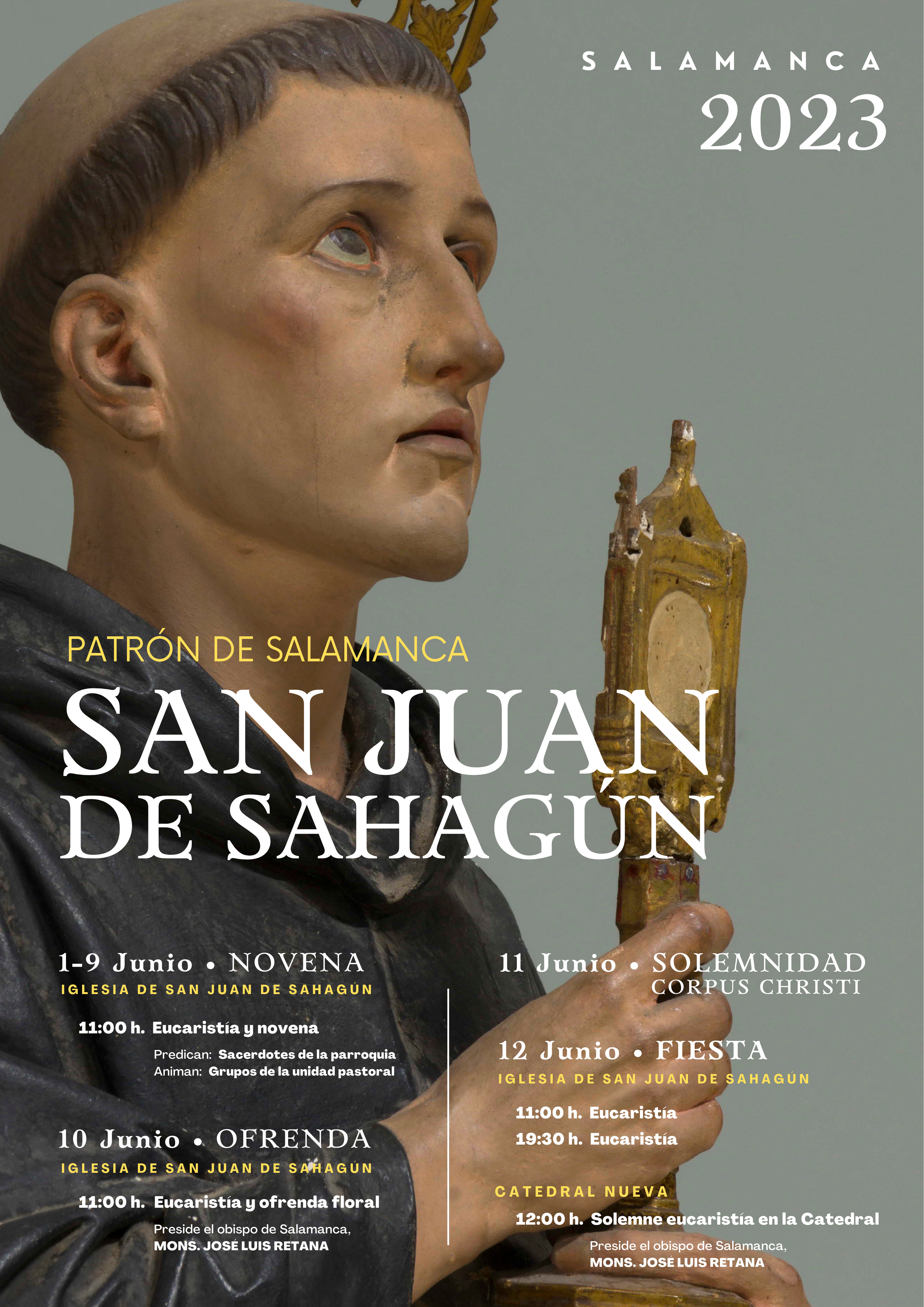 La ofrenda floral al patrón, San Juan de Sahagún, que cada año realiza el alcalde de Salamanca, no tendrá lugar la víspera de la fiesta, como suele ser habitual, sino el sábado, 10 de junio, en la eucaristía de las 11:00 horas y será presidida por el obispo de Salamanca, Mons. José Luis Retana.