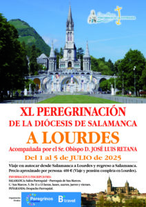 Un total de 194 peregrinos de las Diócesis de Salamanca y Ciudad Rodrigo participarán del 1 al 5 de julio en una nueva edición de la peregrinación diocesana al Santuario de Lourdes, en Francia. De ellos, 28 son personas enfermas, 36 voluntarios y 8 sacerdotes, que acompañarán al grupo en este viaje de fe, fraternidad y oración en torno a la Virgen de Lourdes. También contará con la presencia del obispo de Salamanca, Mons. José Luis Retana, que compartirá con los peregrinos los tres primeros días de la peregrinación.