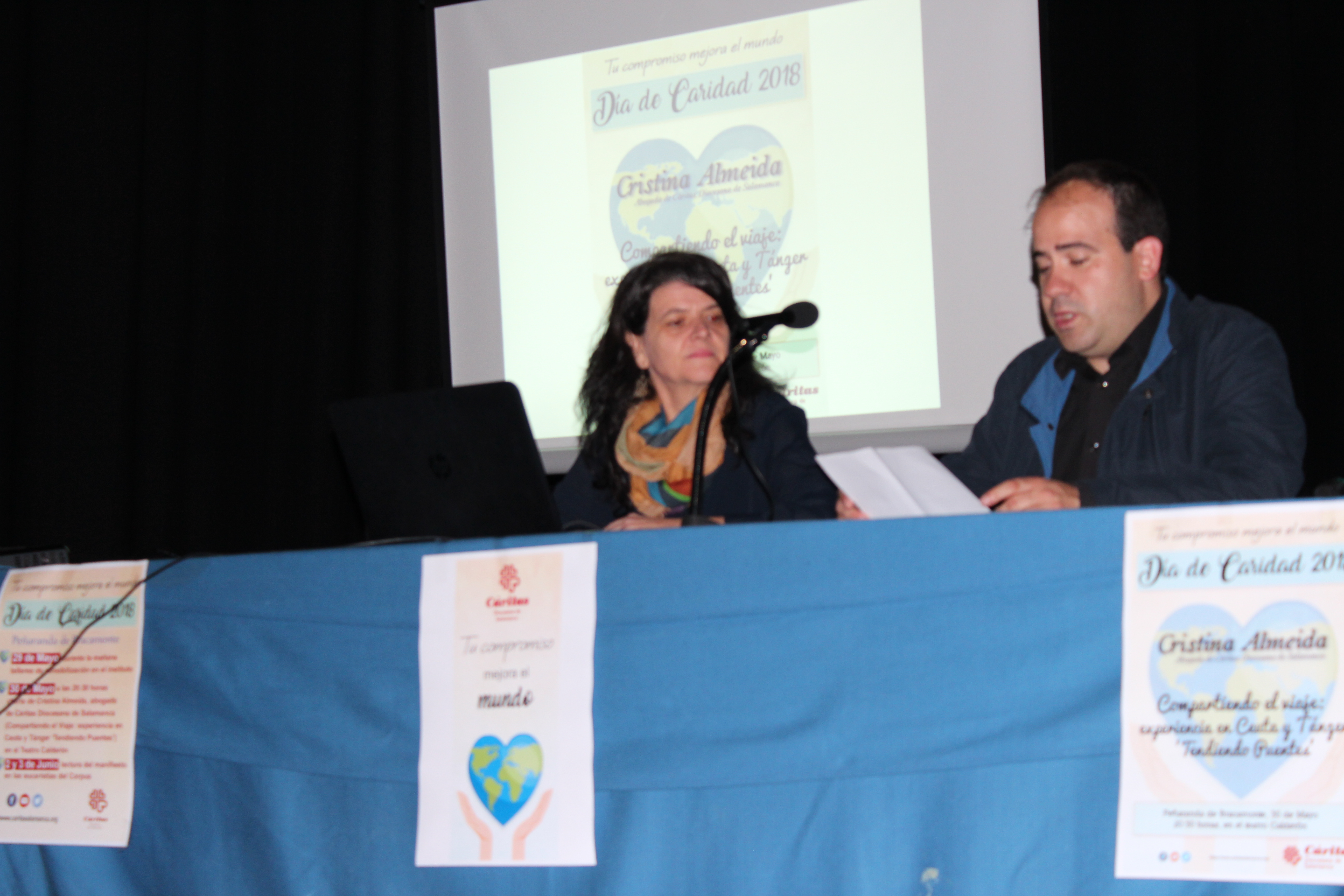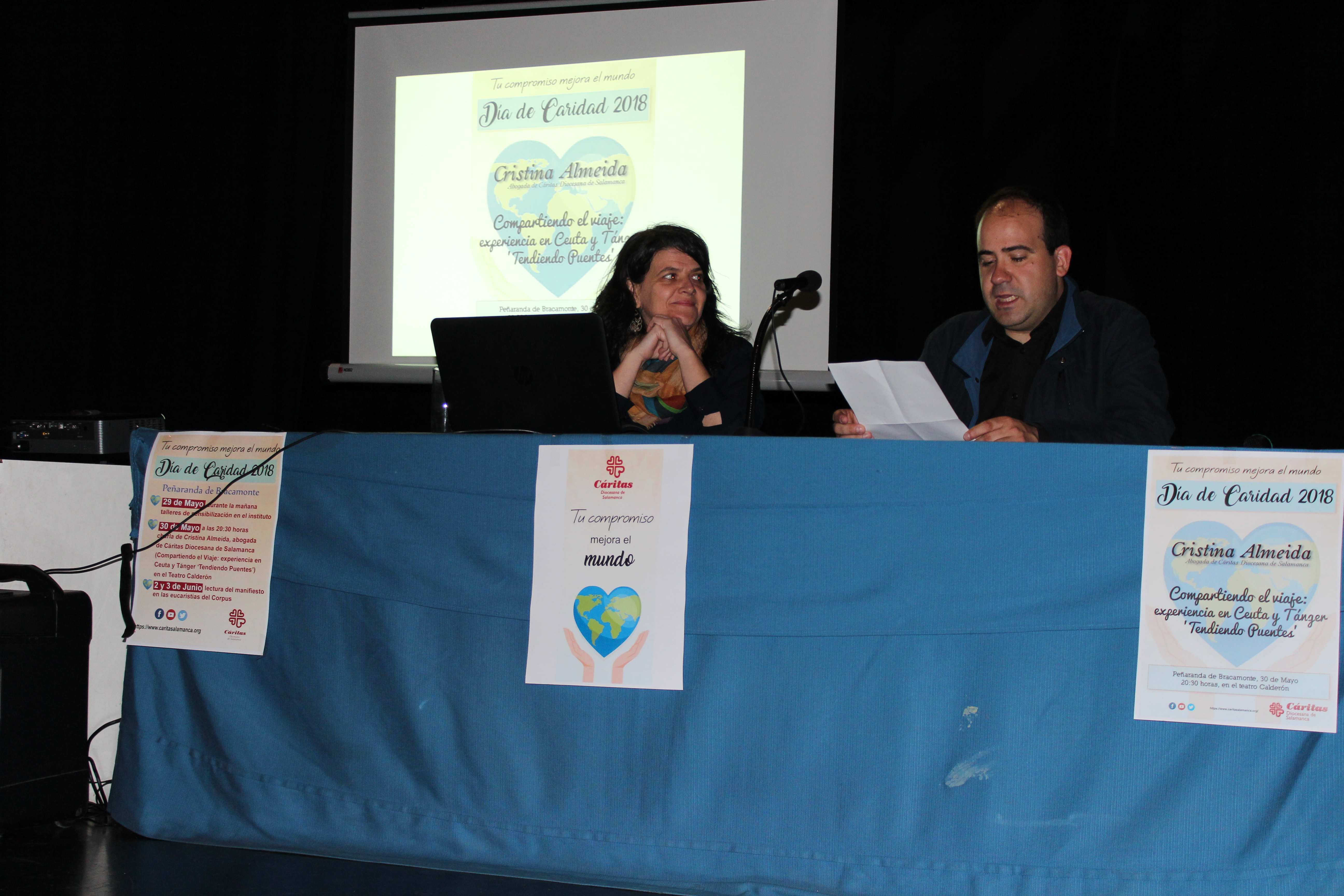 Cristina Almeida, Abogada de Cáritas diocesana de Salamanca ofreció este miércoles, 30 de mayo, en el Teatro Calderón de Peñaranda una charla sobre la campaña Compartiendo el Viaje y su experiencia en Ceuta y Tánger conociendo la situación de los migrantes y refugiados.