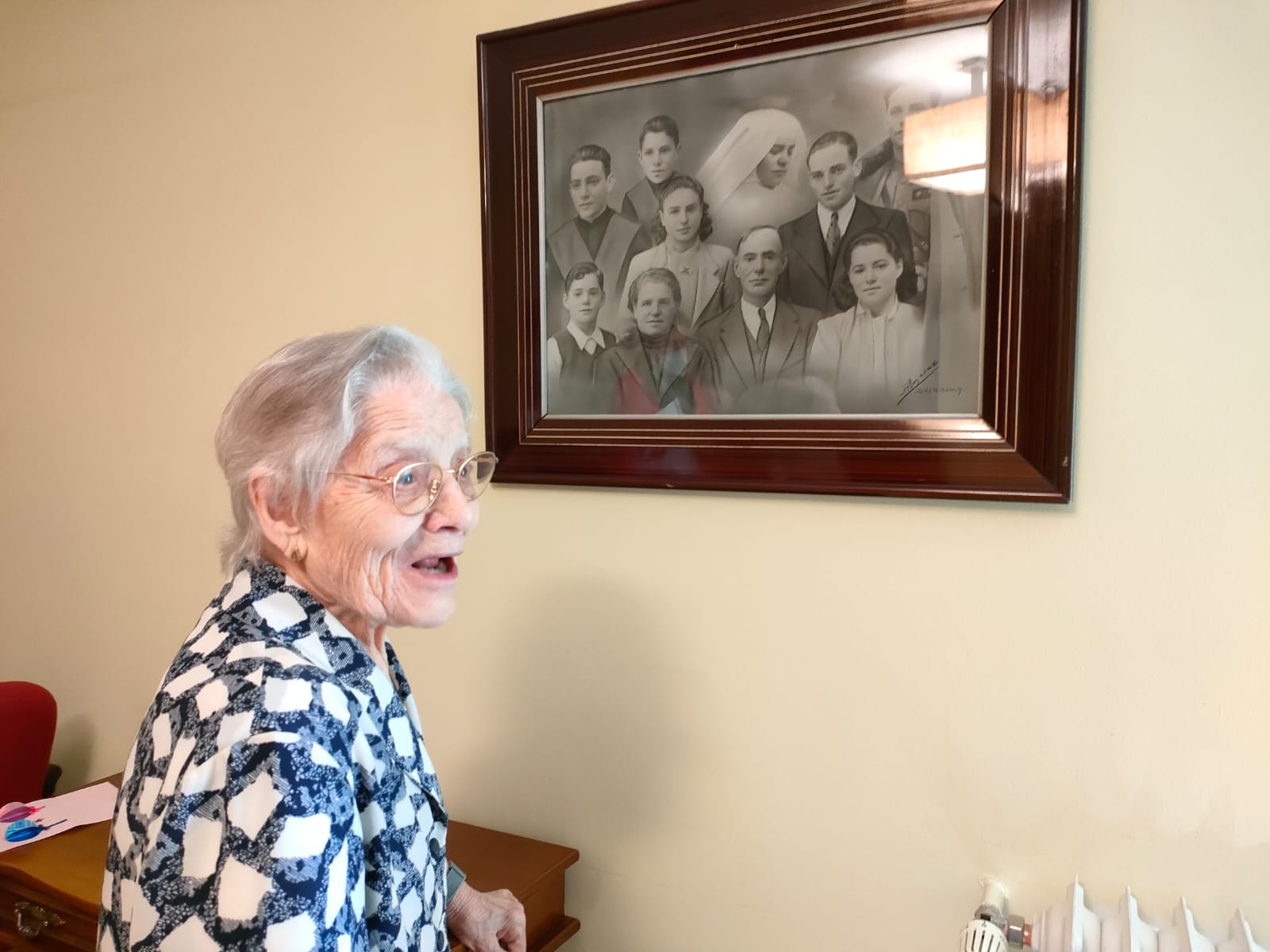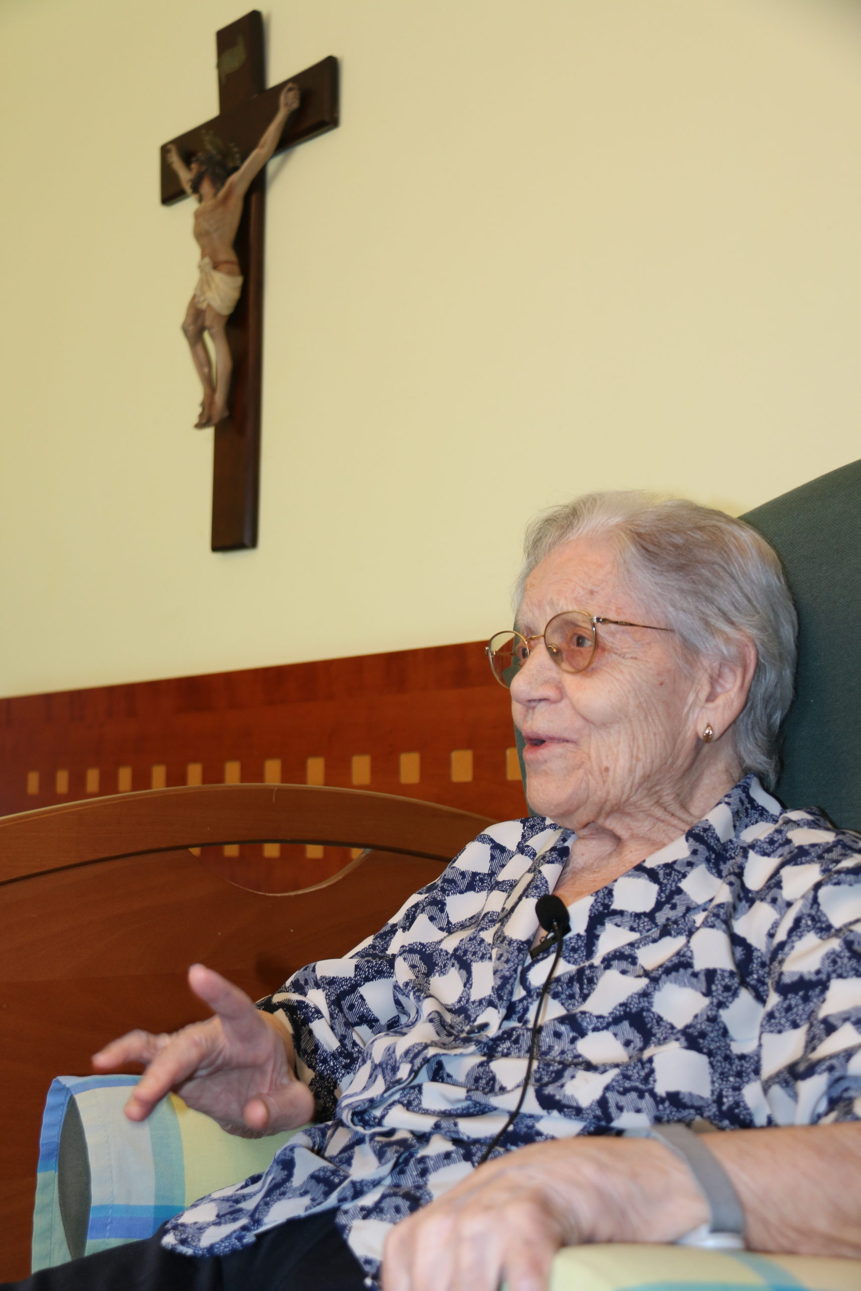 En la residencia diocesana lleva 18 años, donde confirma estar “muy bien”, donde destaca la tranquilidad que tiene, “y tengo todo lo que necesito a mi disposición”. Entre sus platos favoritos, un postre, el arroz con leche, confiesa con una gran sonrisa, algo que la caracteriza, porque cada par de frases ríe a carcajadas.