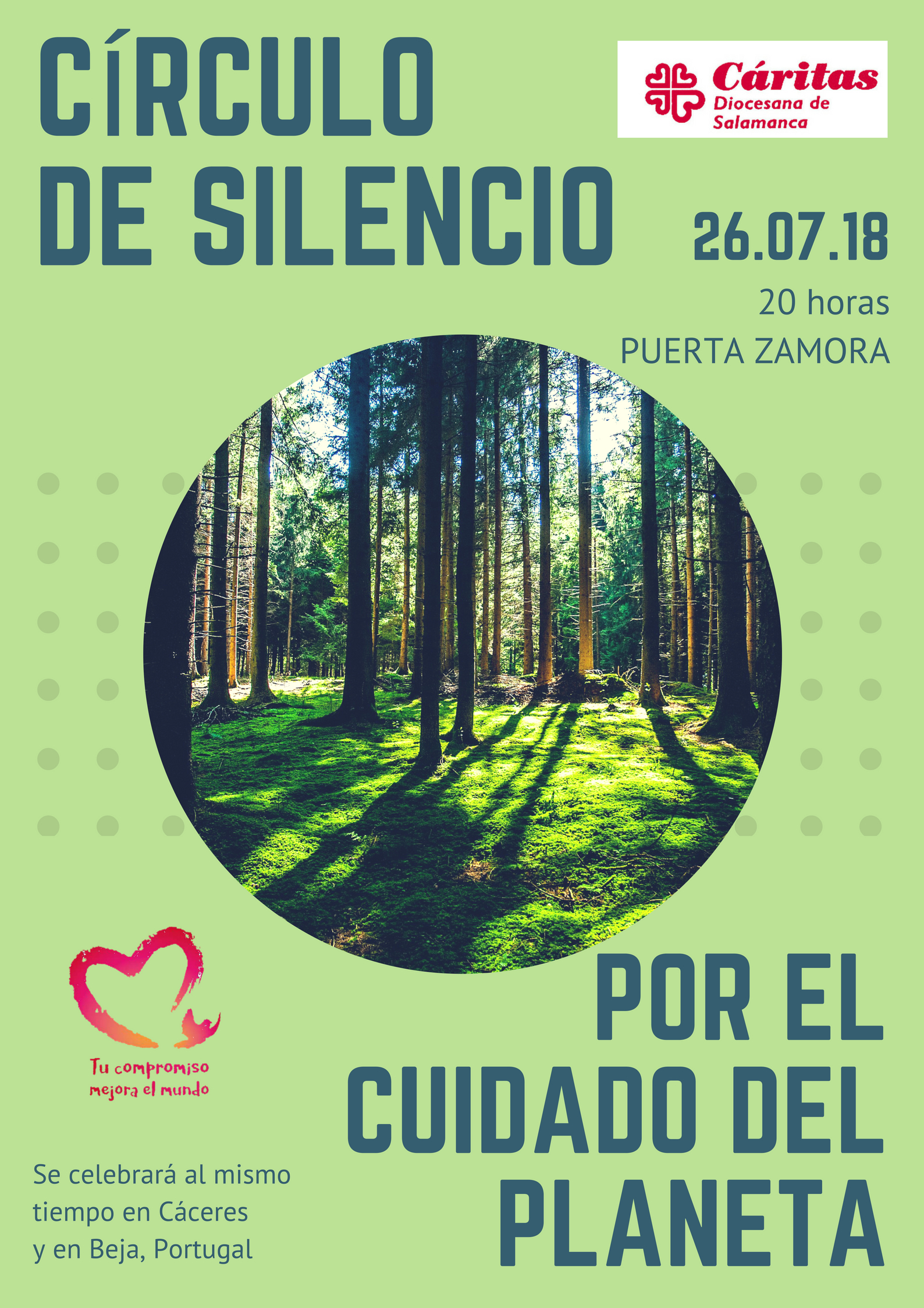 Como cada último jueves de mes, Cáritas Diocesana de Salamanca convoca a la movilización silenciosa en defensa de los derechos de todos. En esta ocasión, el círculo de silencio del próximo jueves se celebrará por el cuidado de la Casa Común, nuestro planeta Tierra.