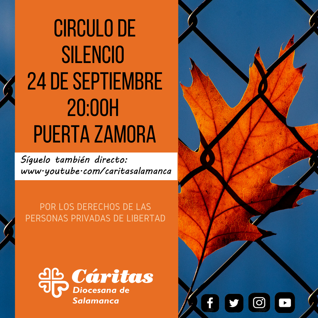 Cáritas diocesana de Salamanca convoca a la sociedad salmantina a participar en un nuevo Círculo del Silencio, el próximo jueves, 24 de septiembre. En esta ocasión el tema sobre el que se va a reflexionar en esta concentración silenciosa será “Los derechos de las personas privadas de libertad”.