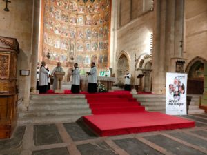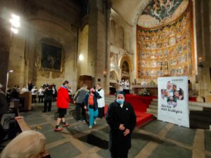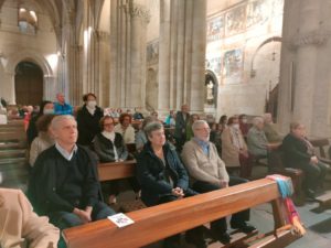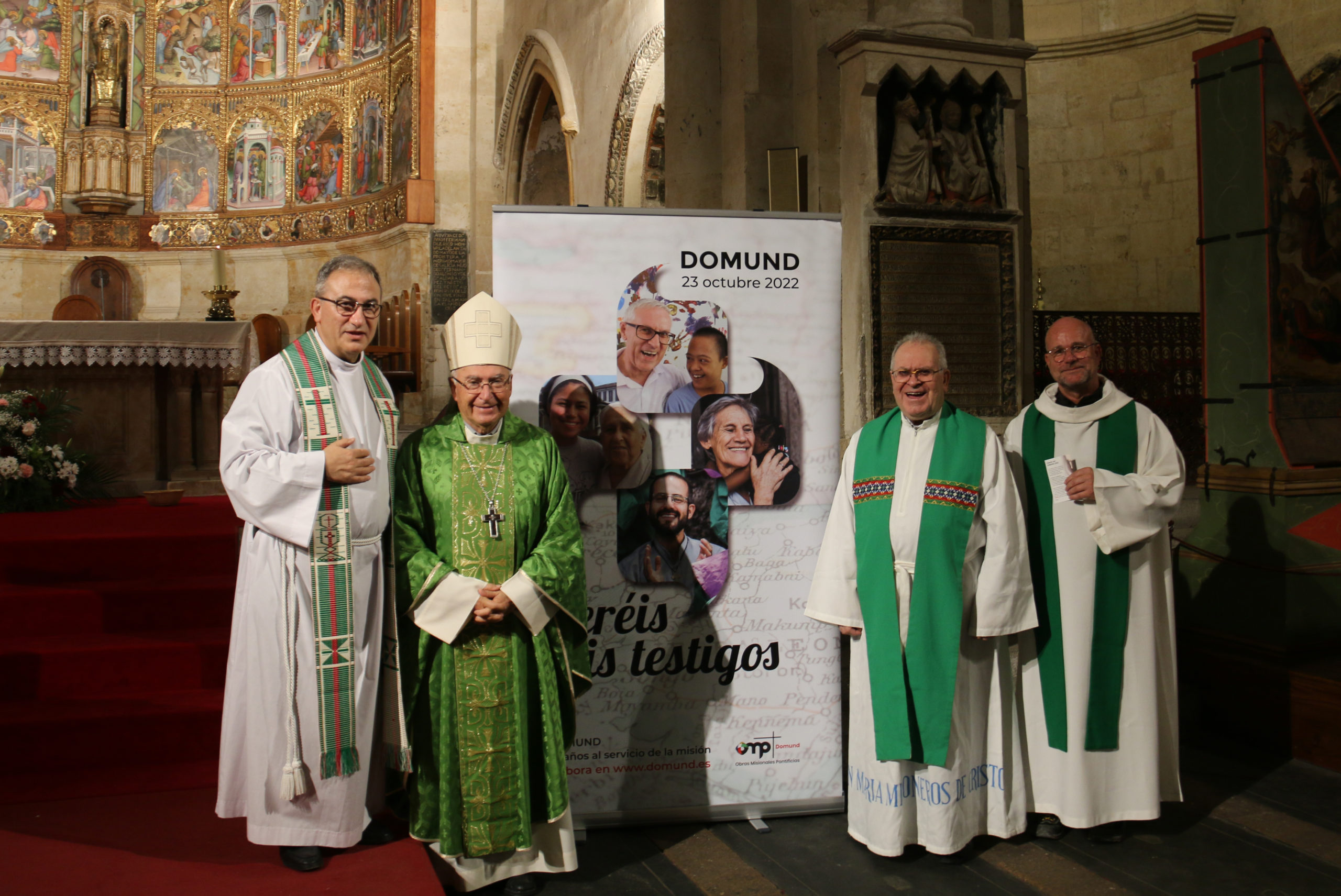 Mons. Julio Parrilla, obispo emérito de Riobamba (Ecuador), presidió la celebración diocesana del domingo de las misiones, en la Catedral Vieja de Salamanca, el pasado domingo, 23 de octubre. El prelado estuvo acompañado del director del Servicio diocesano de Misiones, José Miguel González; el exdirector de OMP Salamanca, Juan Robles, y el P. Marco, un sacerdote esloveno que acudió acompañado de un grupo de peregrinos que hicieron un alto en su camino hacia Santiago de Compostela.