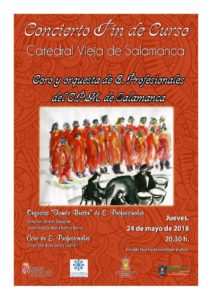 El próximo jueves, 24 de mayo, la Catedral Vieja de Salamanca acogerá un Concierto Coro y Orquesta del Conservatorio Profesional de Salamanca en el que intervendrá la Orquesta “Tomás Bretón “de E. Profesionales dirigido por D. Andrés Balaguer y el Coro de E. Profesionales que dirigirá Dña. Rosa Gacía Cachán.