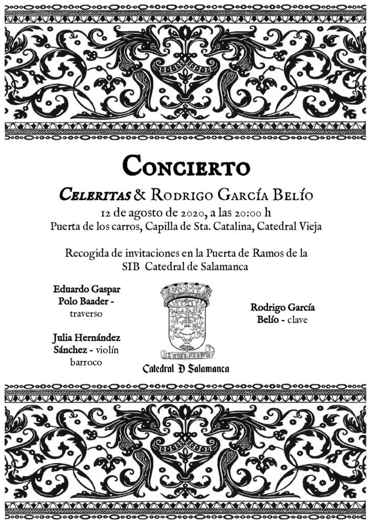 Como en el resto de conciertos organizados en la Catedral, será obligatorio el uso de mascarilla para todos los asistentes y el aforo se reducirá a la mitad (50 personas) para mantener la distancia de seguridad. El acceso se realizará por la Puerta de los Carros, situada en la calle Tentenecio, y la entrada será con invitación, que puede recogerse de manera gratuita en la taquilla de la Puerta de Ramos (plaza de Anaya) en el horario de las visitas turísticas: lunes – jueves de 11:00 a 13:15 y de 16:00 a 18:15. Viernes – domingo de 11:00 a 19:15 horas.
