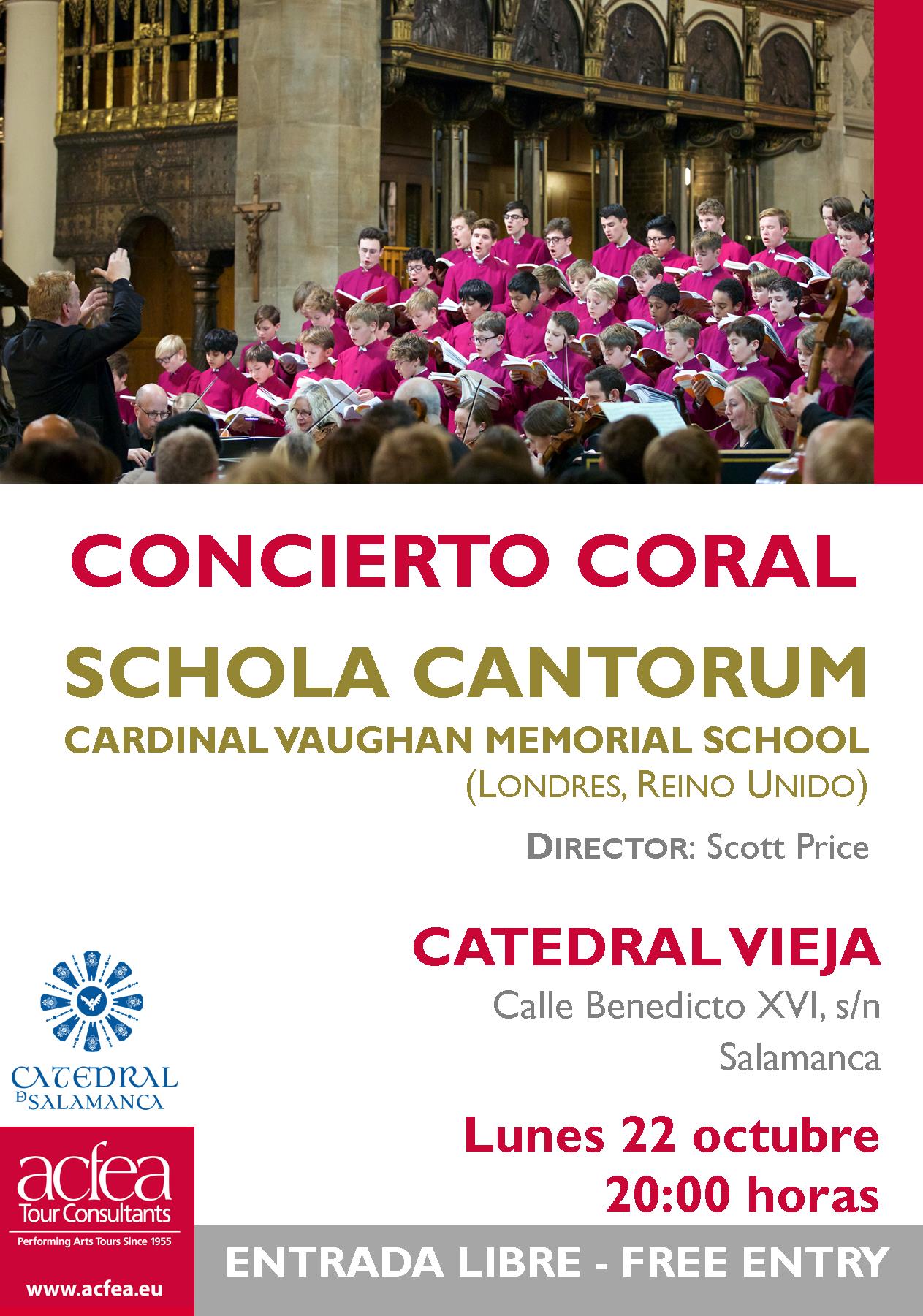 Posteriormente el lunes, 22 de octubre, tendrá lugar otro concierto ofrecido por la Schola Cantorum del Colegio Cardinal Vaughan a las 20:00 h.. La entrada es libre y gratuita.