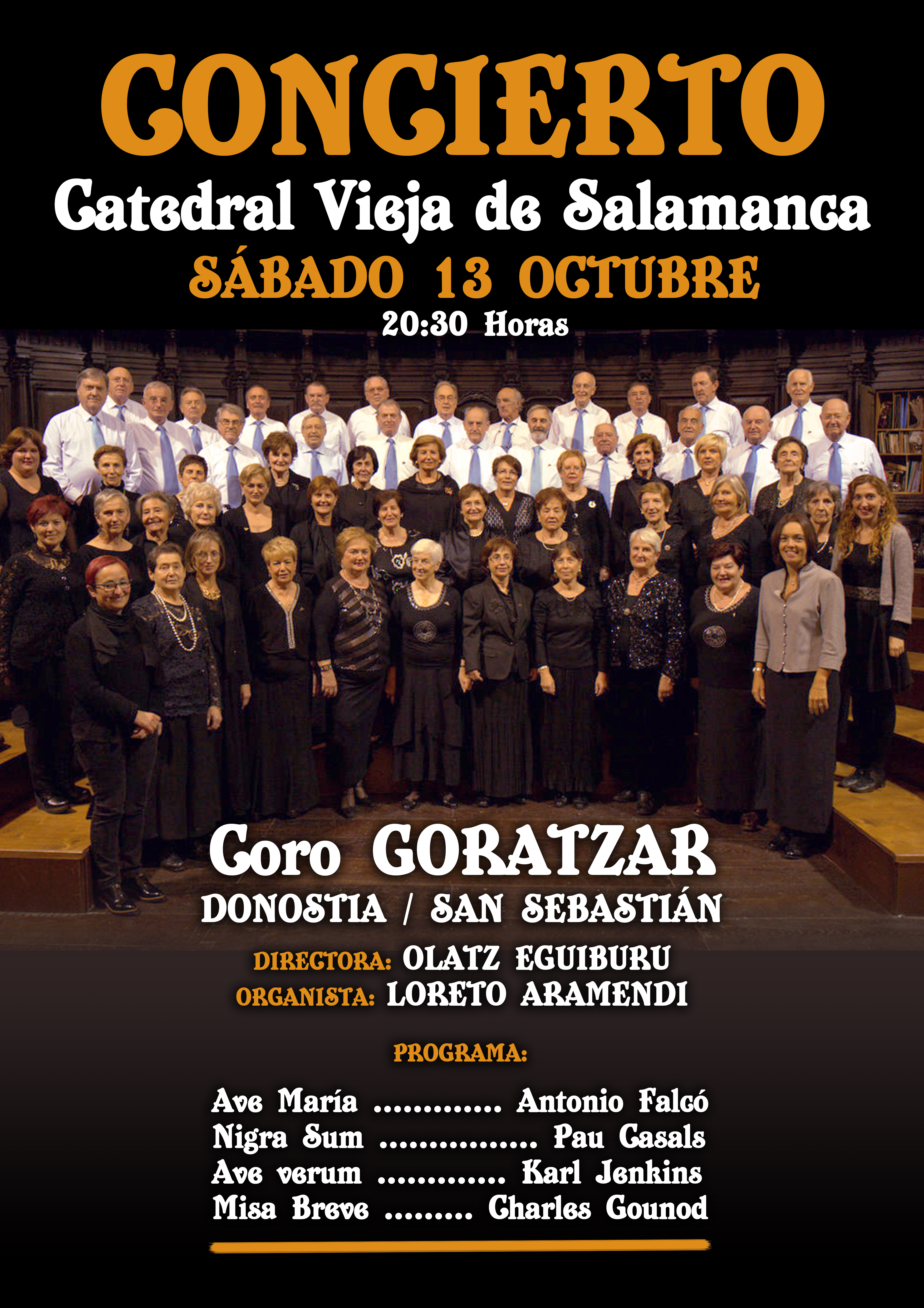 El sábado, 13 de octubre, la agrupación musical donostiarra ‘Goratzar’ ofrecerá un Concierto en la Catedral Vieja a las 20:30 h.