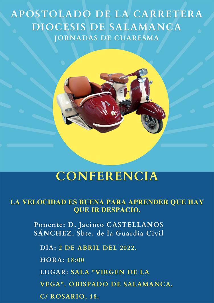 Enmarcada dentro de su programa de Cuaresma, lleva por título “La velocidad es buena para aprender que hay que ir despacio”, y correrá a cargo del subteniente de la Guardia civil, Jacinto Castellanos, el 2 de abril en la Casa de la Iglesia