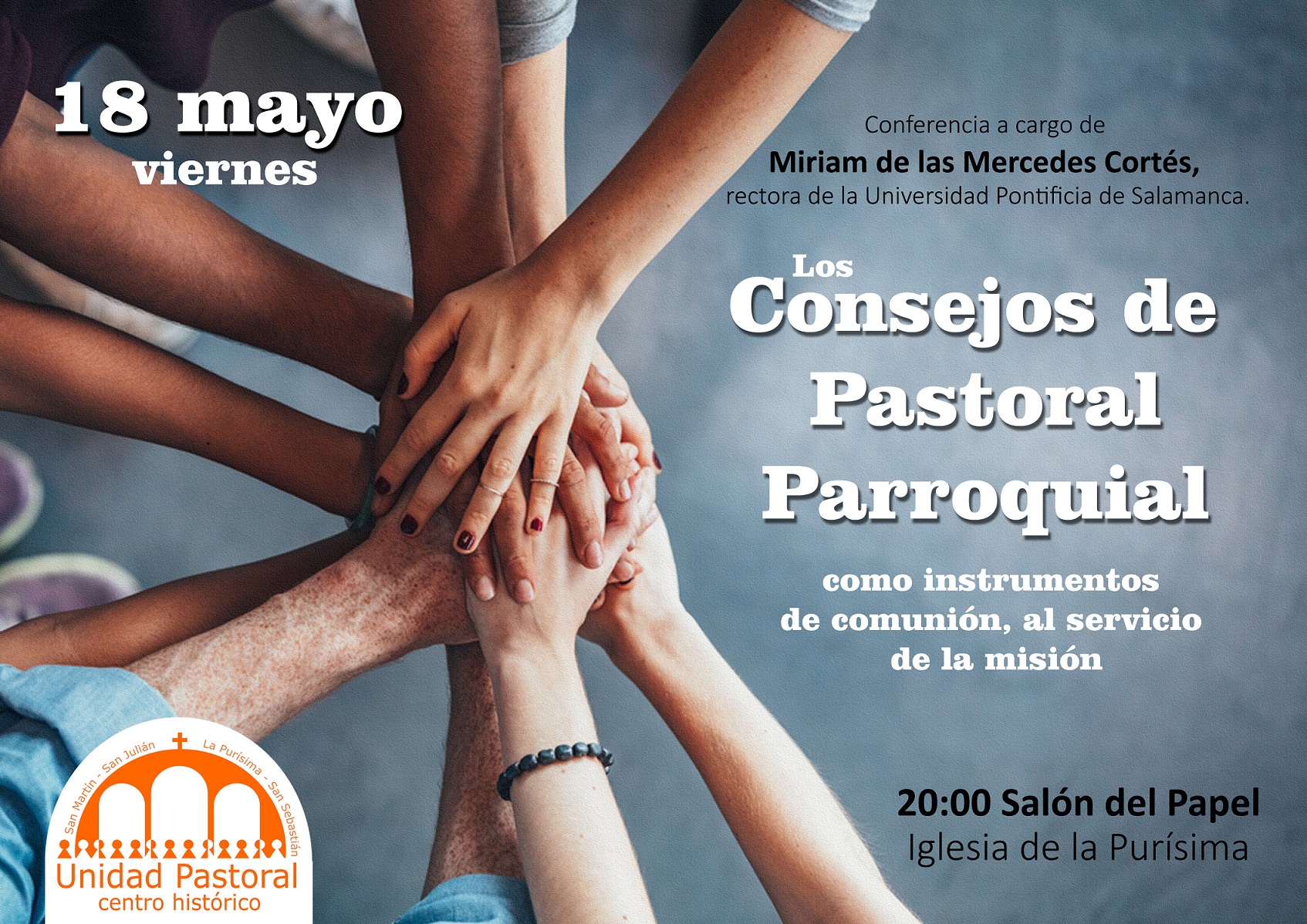 “Los Consejos de Pastoral Parroquial como instrumentos de comunión al servicio de la misión”, es el título de la conferencia que va a impartir Miriam de las Mercedes Cortés, rectora de la Universidad Pontificia de Salamanca el viernes 18 de mayo, a las 20.00 horas en el salón del Papel de la parroquia de la Purísima.