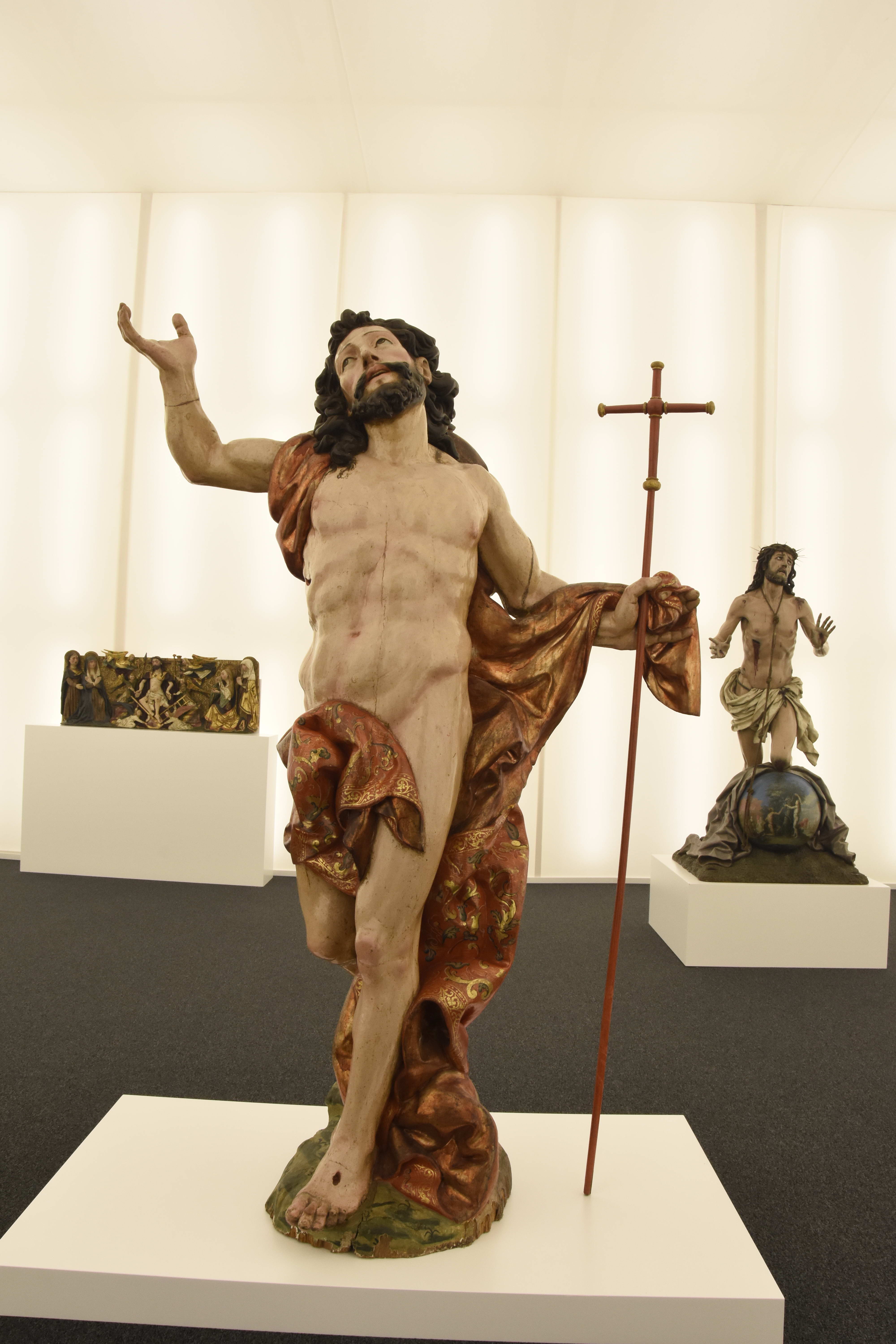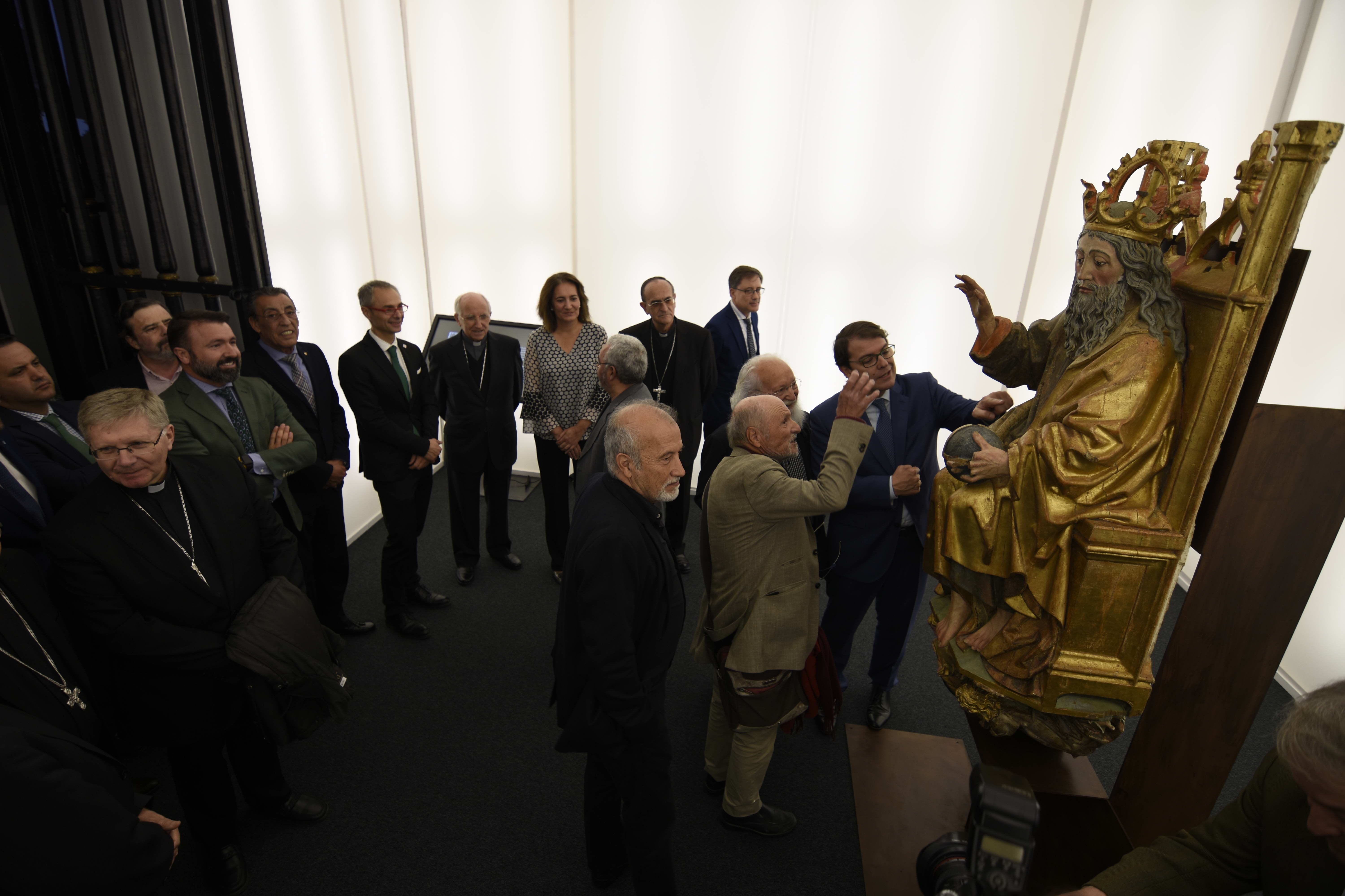 La primera obra que podemos contemplar es la magnífica talla de madera policromada: ‘Padre Eterno’, de Alejo Vahía (S.XV). A continuación la ‘Tentación de Adan y Eva’ del Maestro Antonio; las esculturas en bronce de ‘Adán-nada y Eva-Ave’ de Juan Bordes (1986); y ‘El paraíso perdido’ de José Luis Alonso Coomonte (2003). A partir de ahí se exhiben obras maestras de Pedro y Alonso Berruguete, Jusepe Leonardo, Gregorio Fernández, Luis de Morales, Diego de Siloé, Pedro de Mena, Juan de Juni, Fernando Gallego, Gil de Siloé y Luis S. Carmona, junto a piezas contemporáneas de Daniel Quintero, Luis Mayo, Eduardo Palacios, Clara Gangutia, Venancio Blanco, Luciano Díaz-Castilla; Miquel Navarro, Ricardo Flecha Barrio, Julio López, Antonio López y Carmen Laffón, creaciones que muestran la relación de Dios con el hombre. Como colofón a esta exposición “de pequeño formato, pero inmensa en calidad y significación”, como la calificó su comisario D. Gonzalo Jiménez, encontramos ‘El Salvador’ de El Greco.