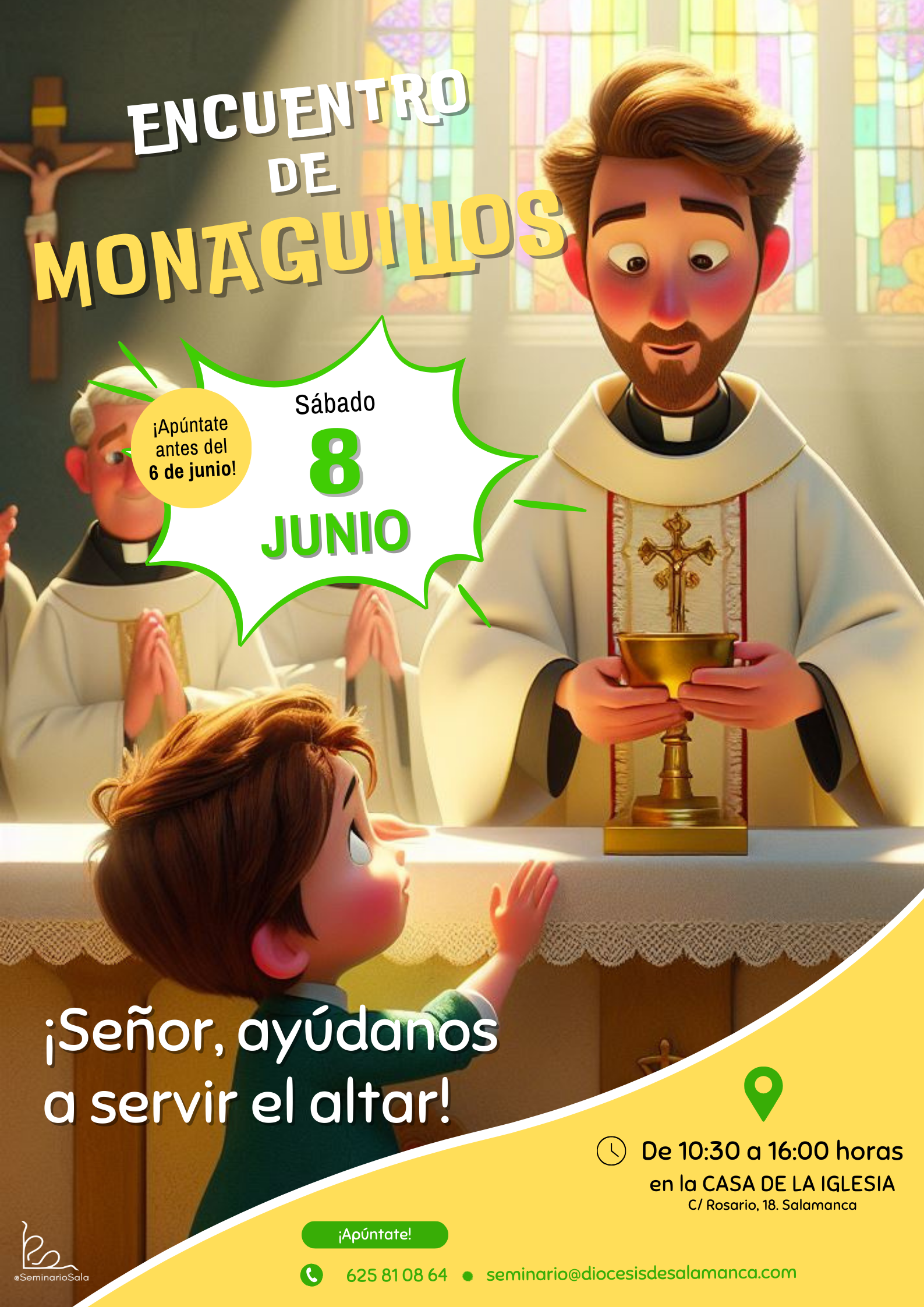 El Seminario diocesano organiza una convivencia de monaguillos dirigida a los niños y niñas de las parroquias de la Diócesis de Salamanca que colaboran en el servicio del altar cada domingo. La actividad se llevará a cabo el sábado, 8 de junio, de 10:30 a 16:00 horas, en la Casa de la Iglesia.