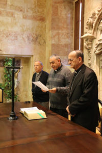 D. Jesús Terradillos, canciller-secretario general ha iniciado el acto leyendo el nombramiento de D. Policarpo Díaz como vicario de pastoral, realizado el pasado 28 de septiembre por el Obispo de Salamanca Mons. Carlos López.