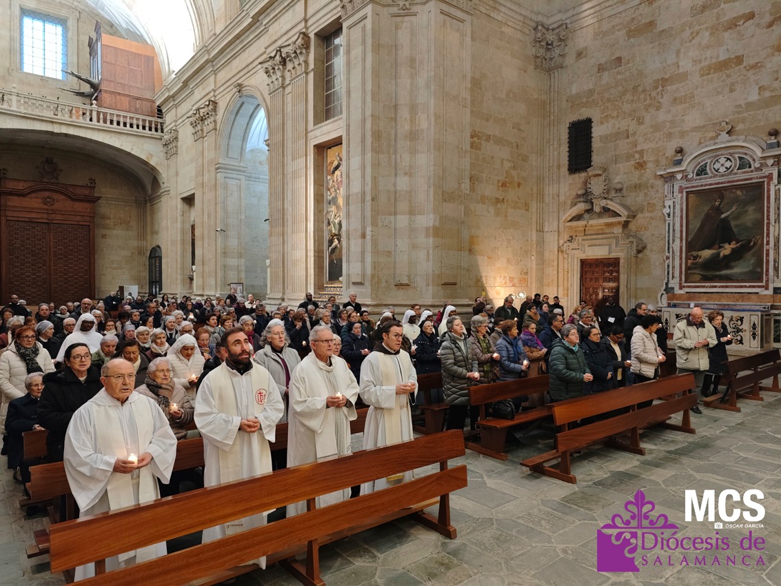 Los institutos de vida consagrada y las sociedades de vida apostólica presentes en la Diócesis de Salamanca se congregaron este domingo, 2 de febrero, en la iglesia de La Purísima para celebrar la XXIX Jornada Mundial de la Vida Consagrada, en el día que la Iglesia conmemora la fiesta de la Presentación del Señor. Esta jornada, instituida en 1997 por el papa Juan Pablo II, es una ocasión especial para reconocer y agradecer la vocación de quienes han entregado su vida por y para Dios, viviendo su misión en el seno de la Iglesia y al servicio de los demás.