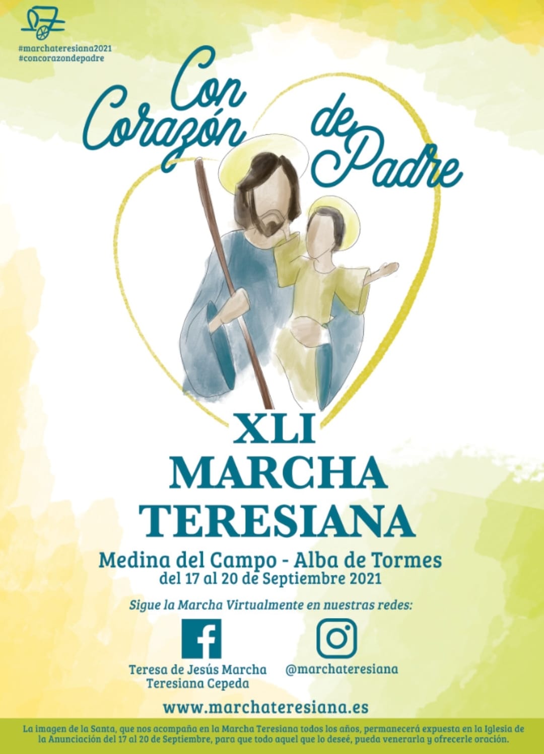 Bajo el lema: “Con corazón de padre”, haciendo un guiño al Año de San José convocado por el Papa Francisco y recordando la devoción que siempre profesó Santa Teresa hacia él, del 17 al 20 de septiembre se va a celebrar la XLI Marcha Teresiana que organiza la Hermandad de Santa Teresa de Alba de Tormes.