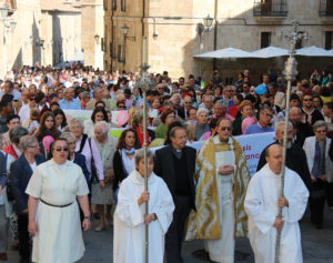Con este lema de fondo, al llegar desde Plasencia a la diócesis salmantina, tuvo que añadir la espiritualidad de los santos que han forjado nuestra vida diocesana y que descansan en nuestros templos como centros luminosos: la carmelita Teresa de Jesús y el agustino Juan de Sahagún, patronos de la diócesis, acompañados por el trinitario Juan de Mata, la jesuitina Cándida María de Jesús y la josefina Bonifacia Rodríguez de Castro. Unidos a estos santos, preside como Madre y Maestra en nuestra Catedral vieja la figura de Nuestra Señora la Virgen de la Vega, patrona de la ciudad de Salamanca.