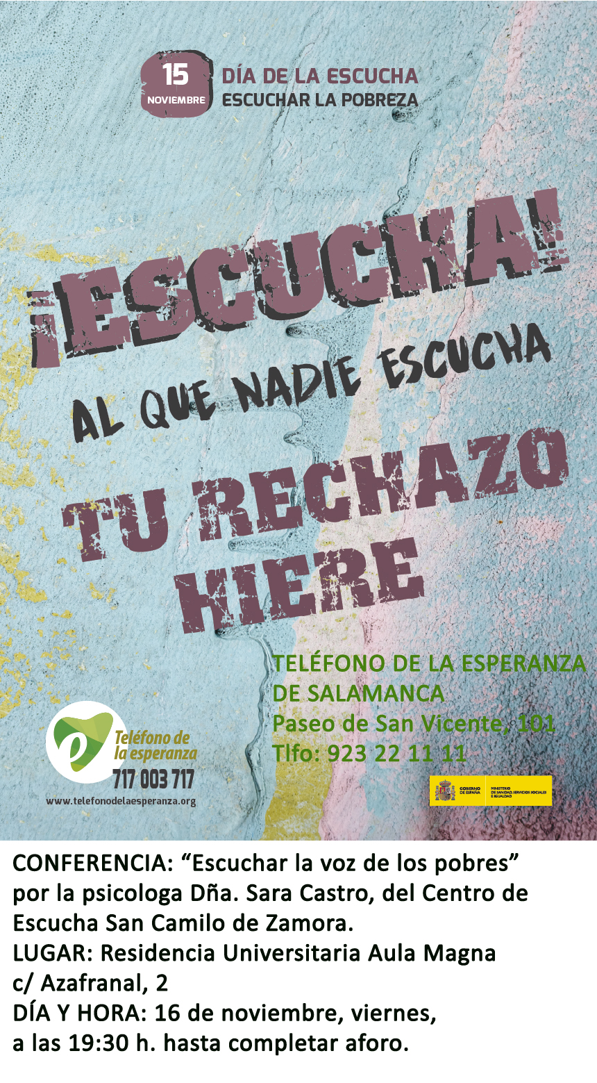 Desde hace años, el Teléfono de la Esperanza celebra el día 15 de noviembre el “Día de la Escucha”, con ello pretende: