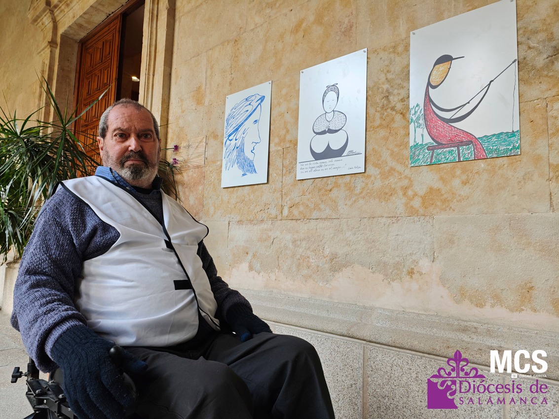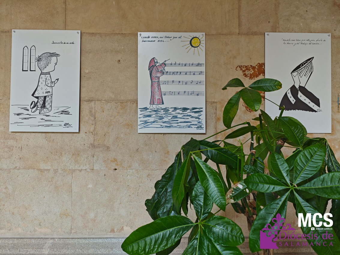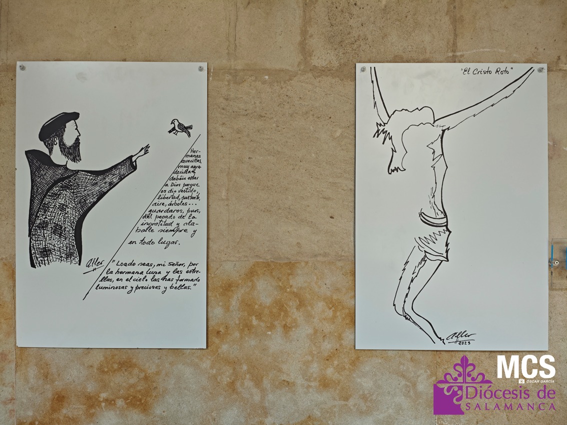 En algunos de sus dibujos se refleja su pasado educativo junto a los padres capuchinos, desde los 11 años, primero en Cantabria y más tarde, en El Pardo, en Madrid, para estudiar Bachillerato. Además, estudió Filosofía en Salamanca y Teología en León. En concreto, hay cinco o seis cuadros vinculados a la figura de San Francisco de Asís. Esta exposición es la cuarta del autor y la que más obra contiene.